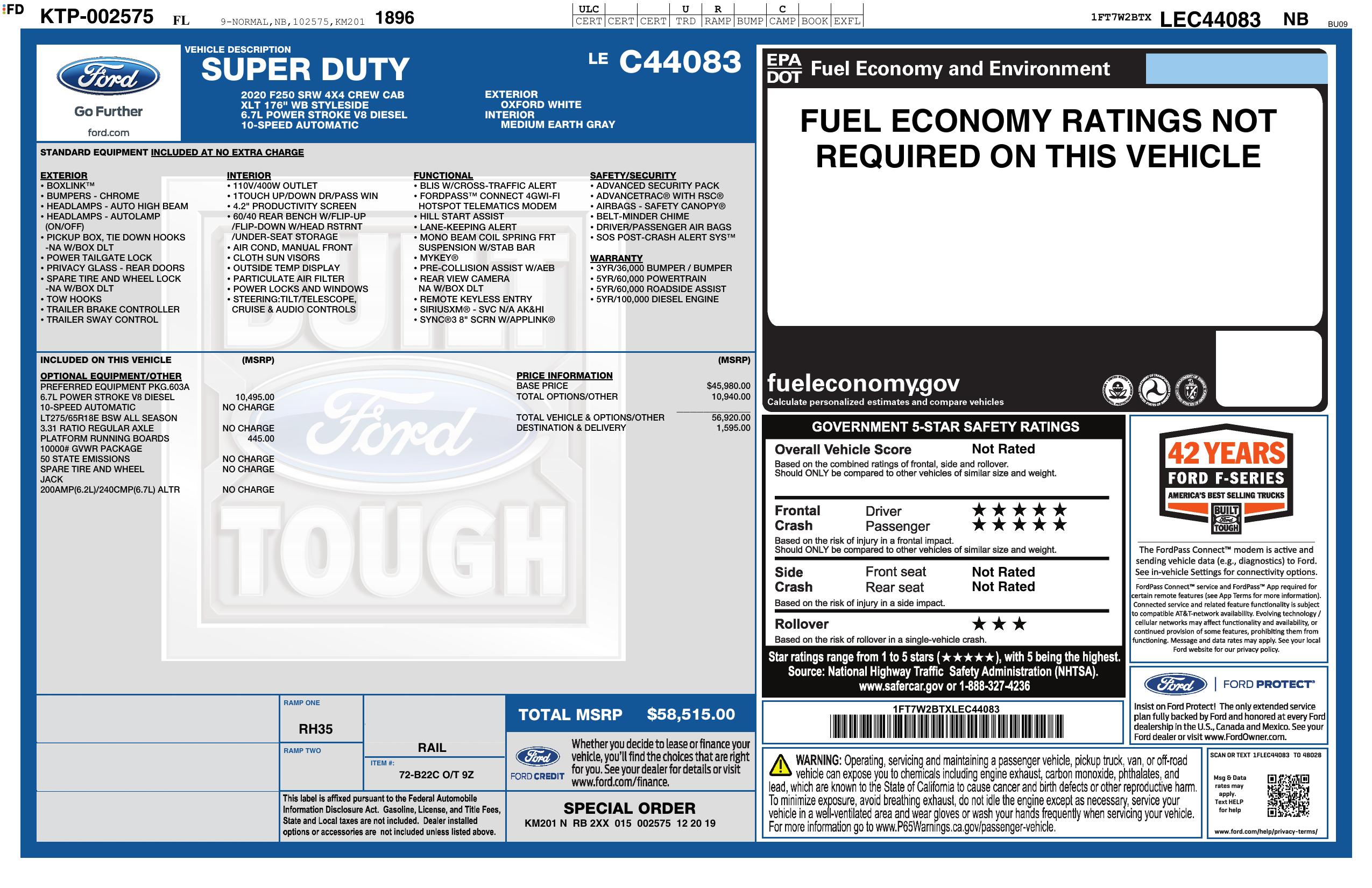2020 Ford Super Duty F 250 Srw Xlt 4 Wd Crew Cab 8' Box