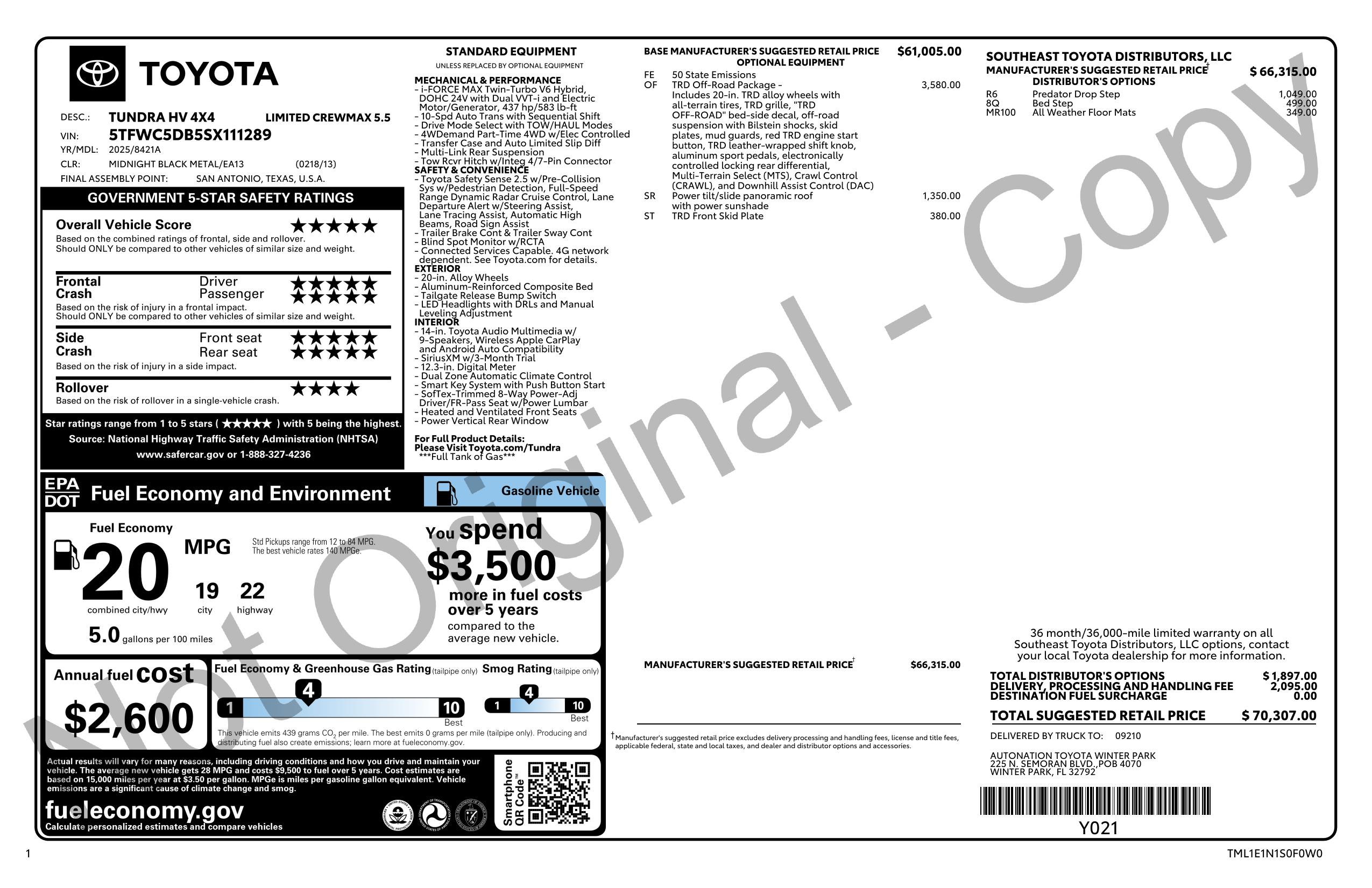 2025 Toyota Tundra 4 Wd Hybrid Crew Max 5.5' Bed (Natl)
