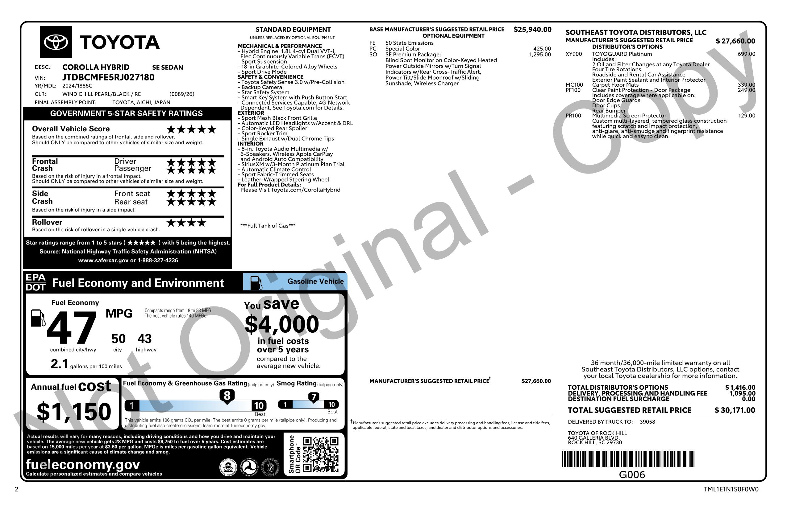 2024 Toyota Corolla Hybrid Fwd (Natl)