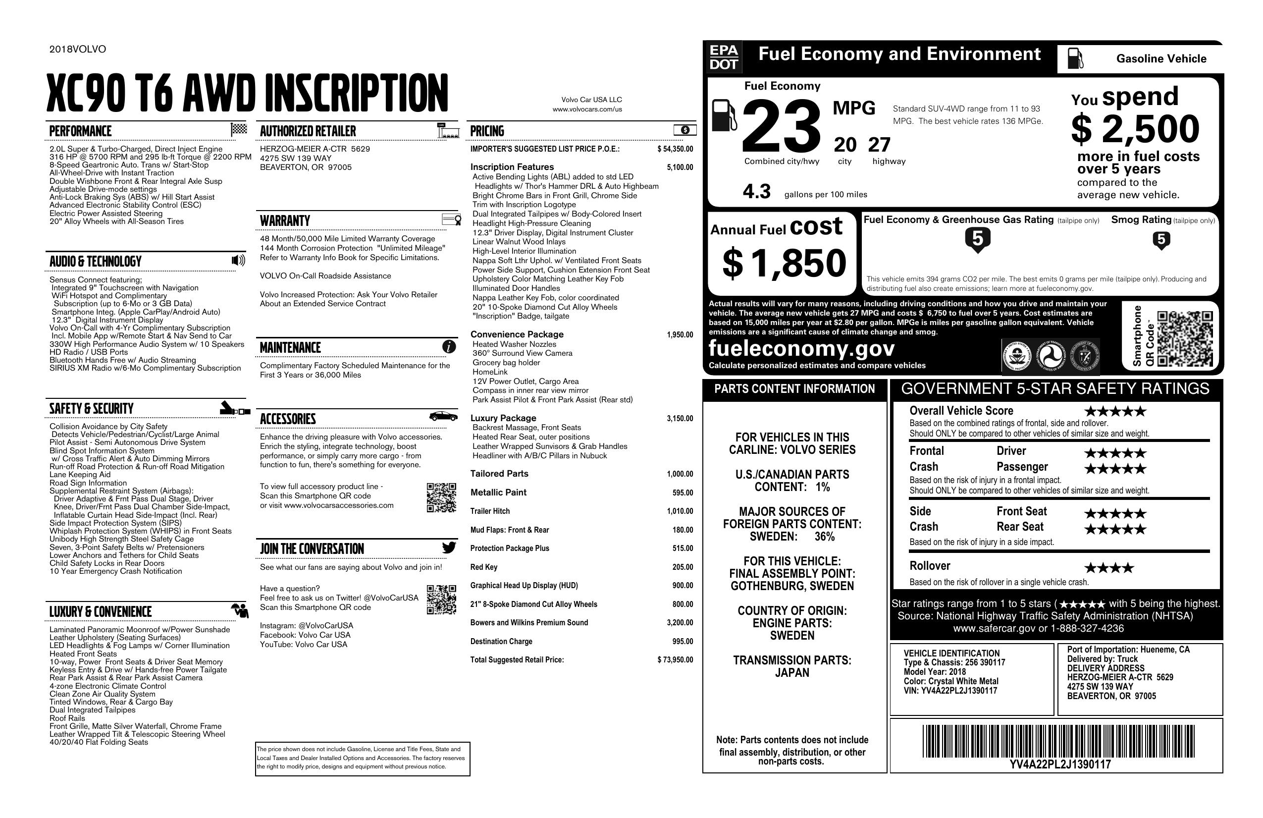 2018 Volvo Xc90 T6 Awd 7 Passenger Inscription