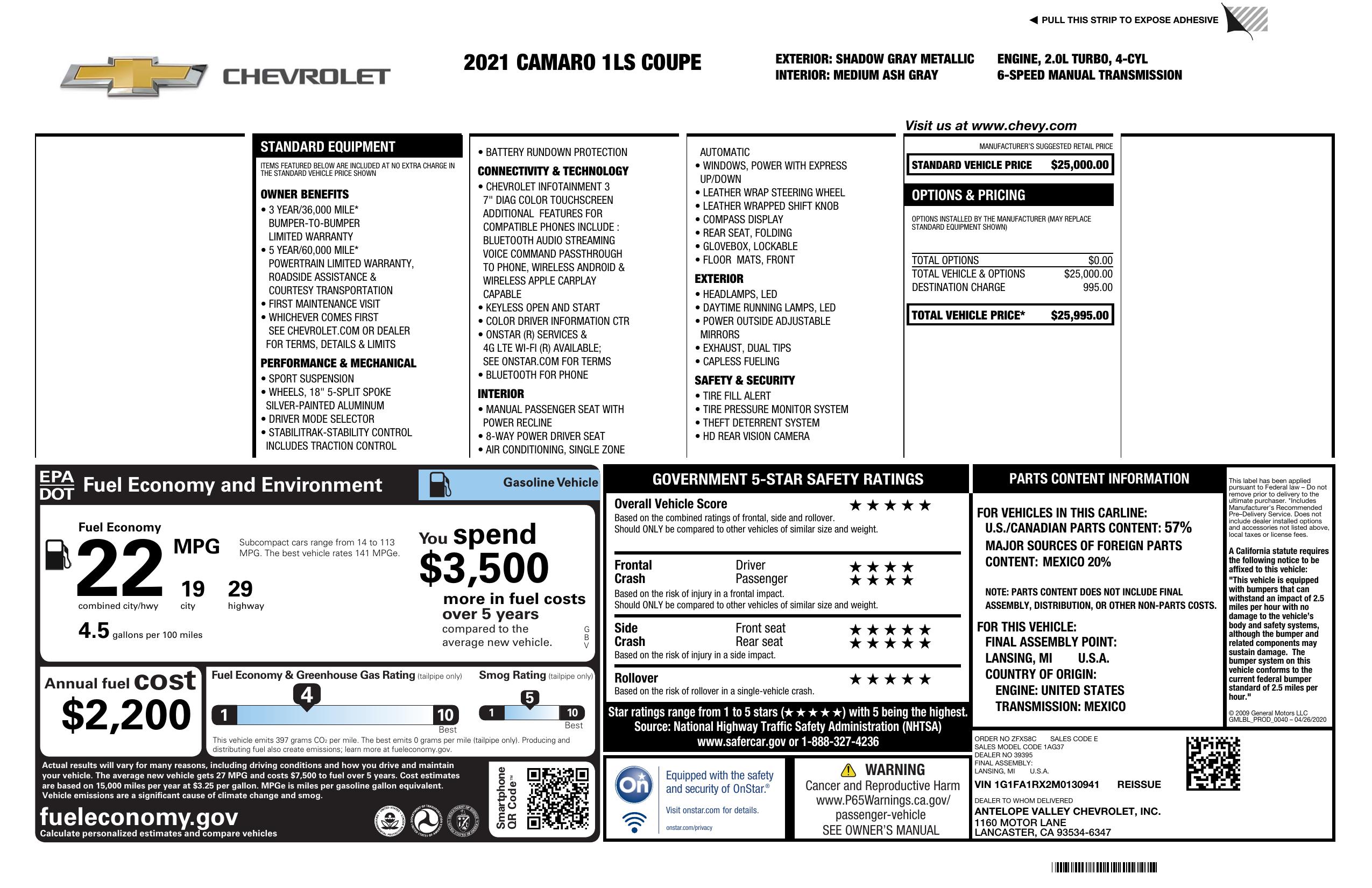 2021 Chevrolet Camaro 2dr Cpe 1 Ls