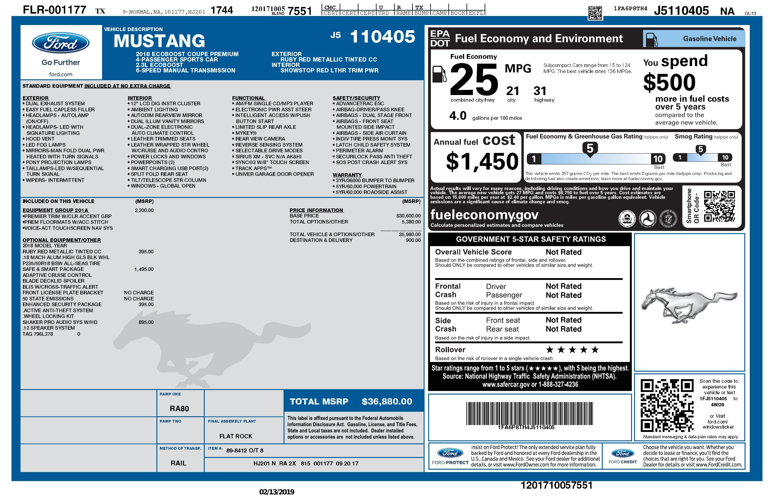 2018 Ford Mustang Eco Boost Fastback