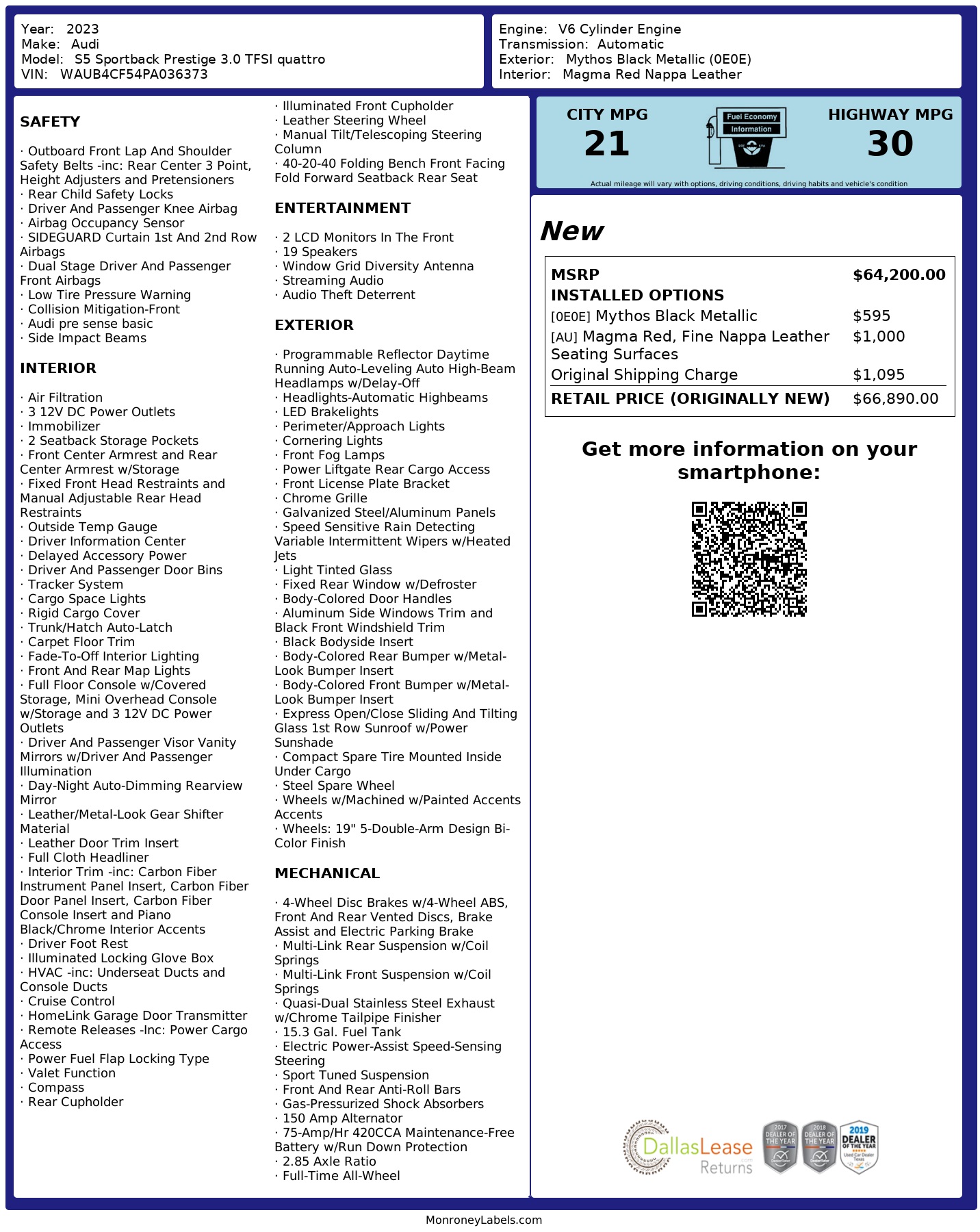 2023 Audi S5 Sportback Prestige 3.0 Tfsi Quattro