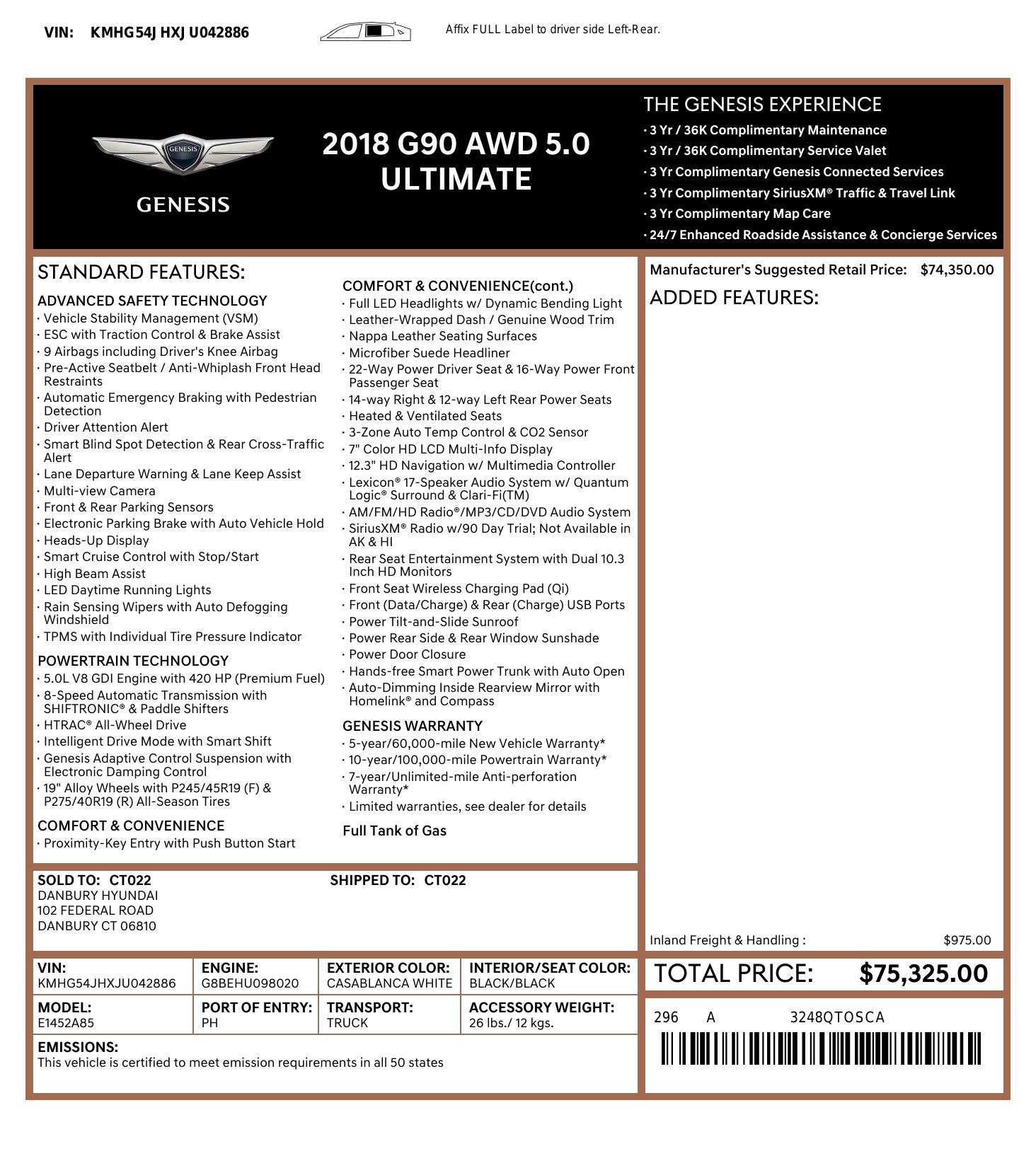 2018 Genesis G90 Awd 5.0 Ultimate 4dr Sedan