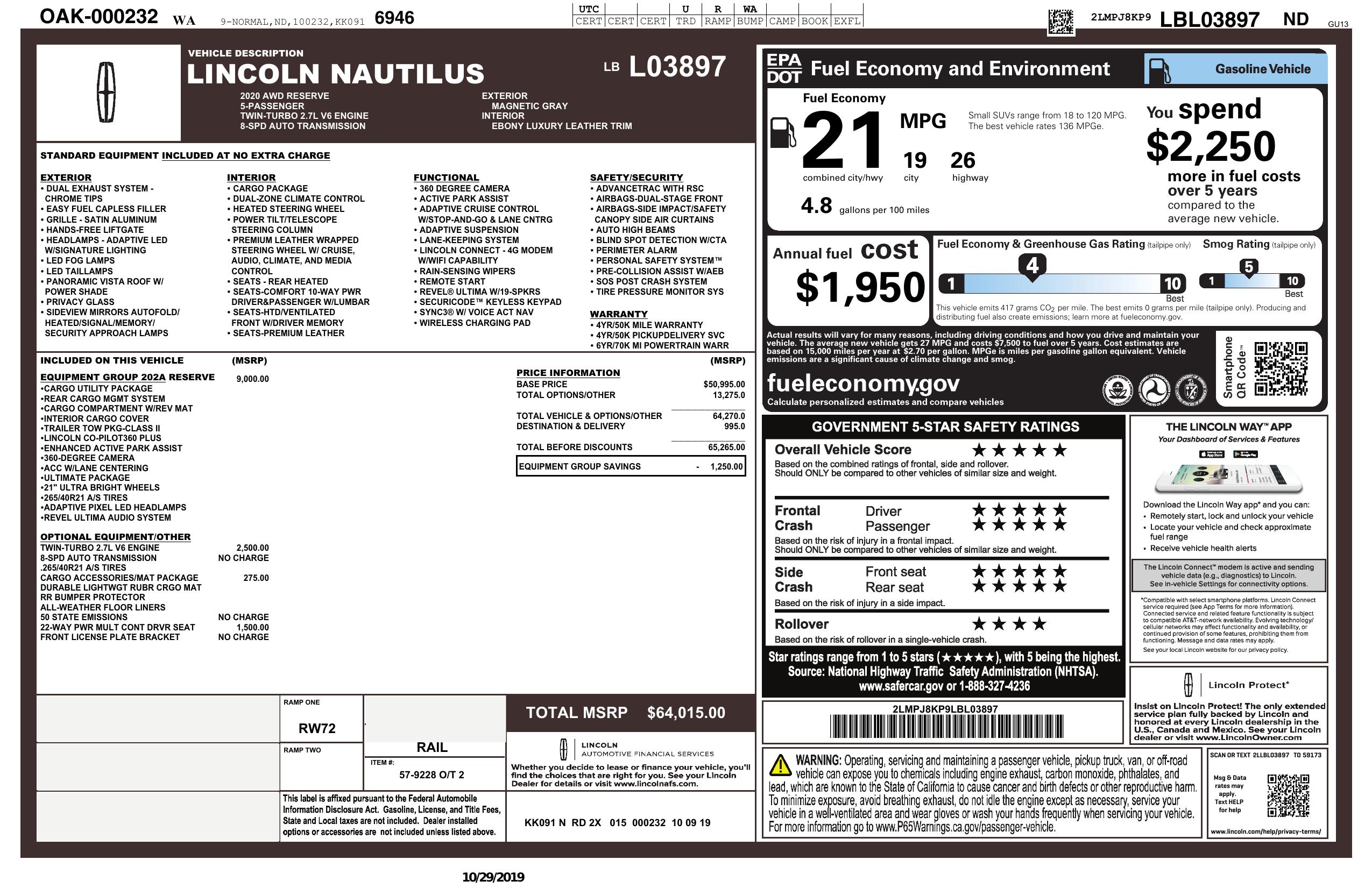 2020 Lincoln Nautilus Reserve Awd