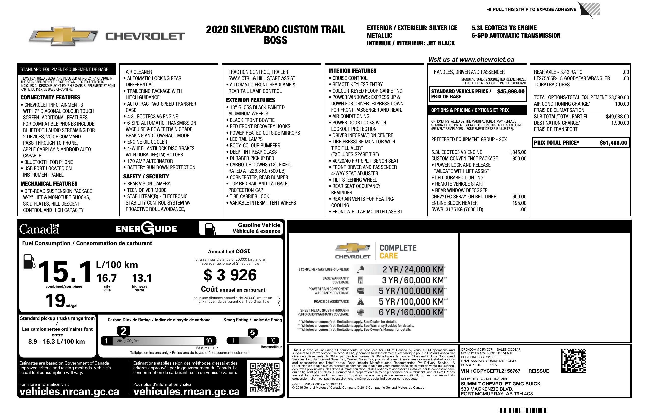 2020 Chevrolet Silverado 1500 4 Wd Crew Cab 147" Custom Trail Boss