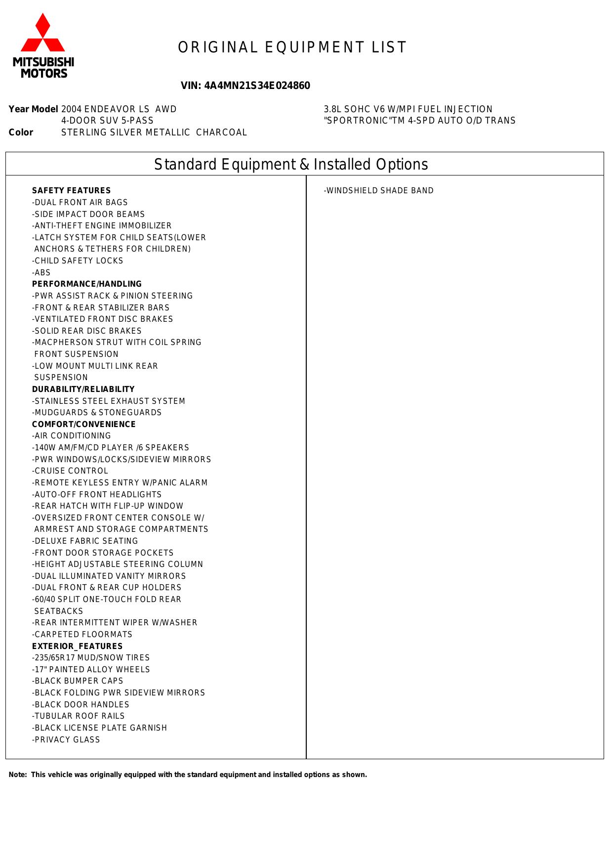 2004 Mitsubishi Endeavor 4dr Awd Ls