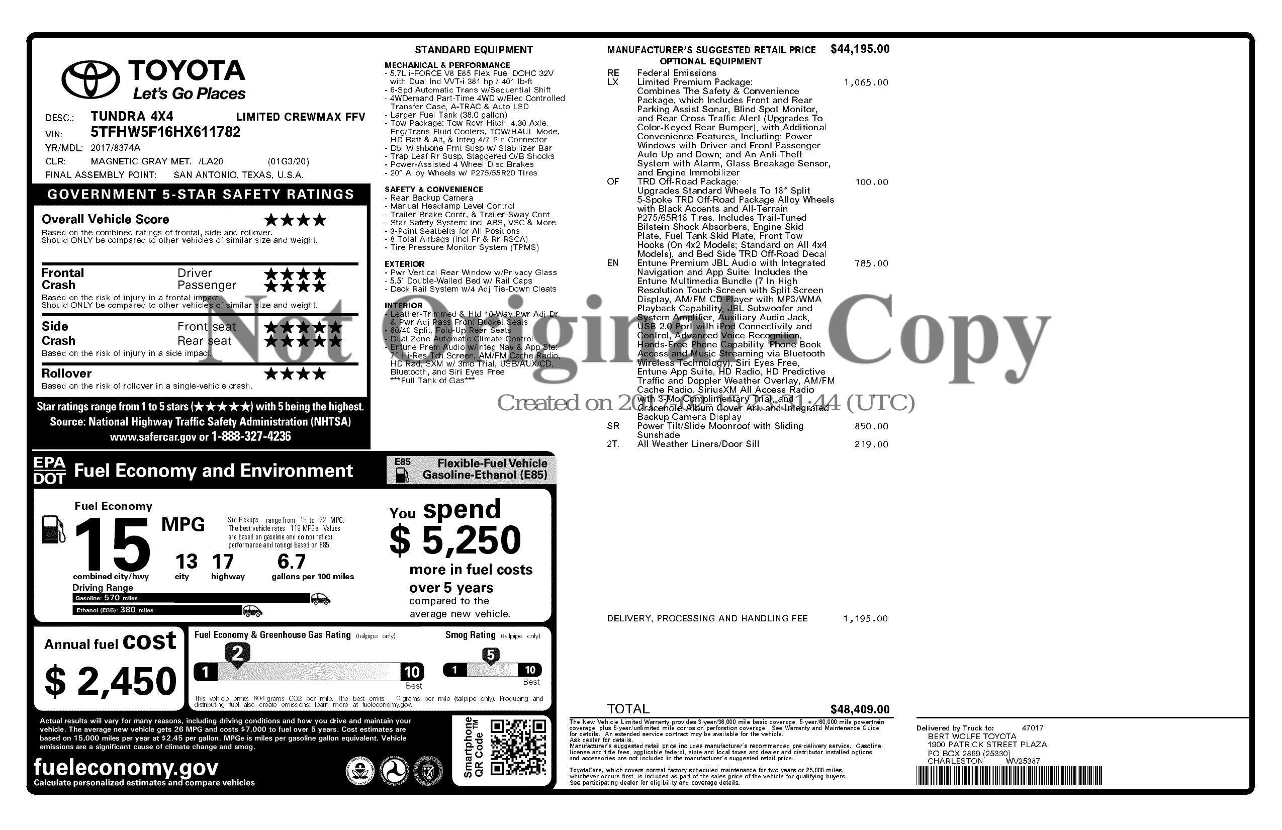 2017 Toyota Tundra 4 Wd Limited Crew Max 5.5' Bed 5.7 L Ffv (Natl)