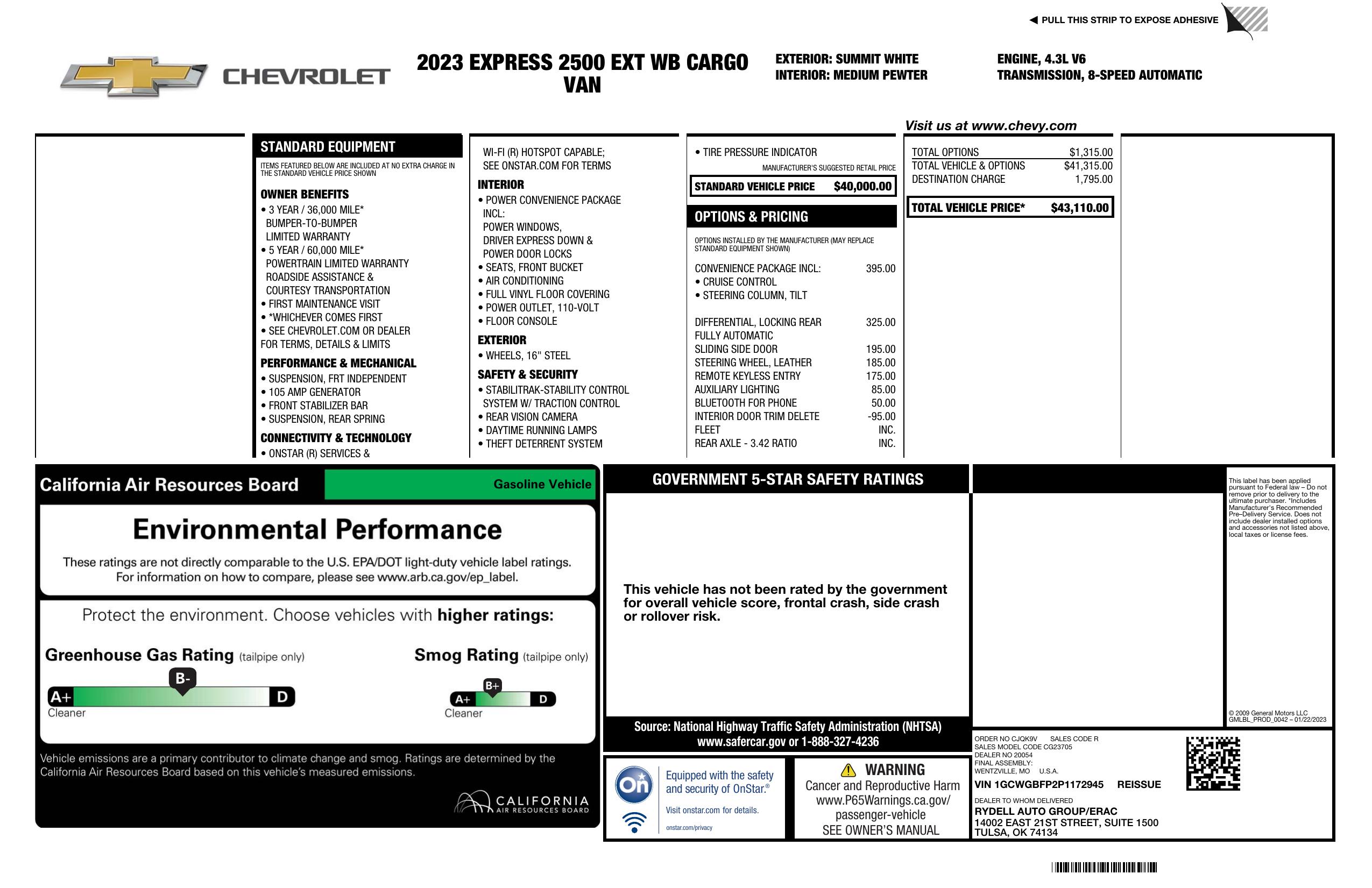 2023 Chevrolet Express Cargo Van Rwd 2500 155"