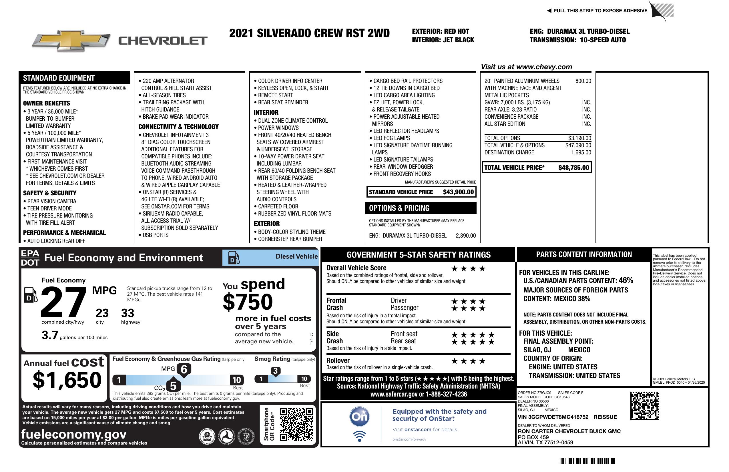 2021 Chevrolet Silverado 1500 2 Wd Crew Cab 147" Rst