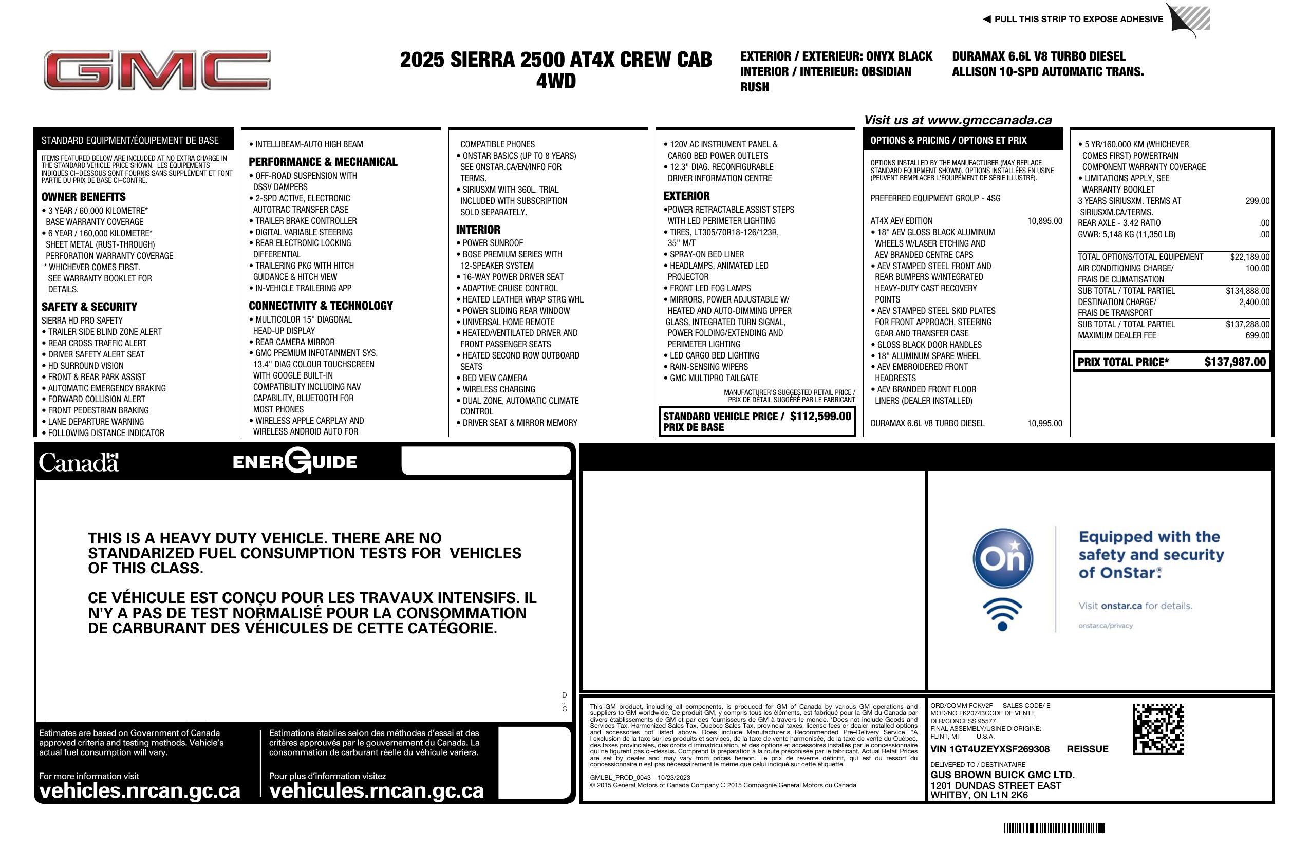 2025 GMC Sierra 2500 Hd 4 Wd Crew Cab 159" At4 X
