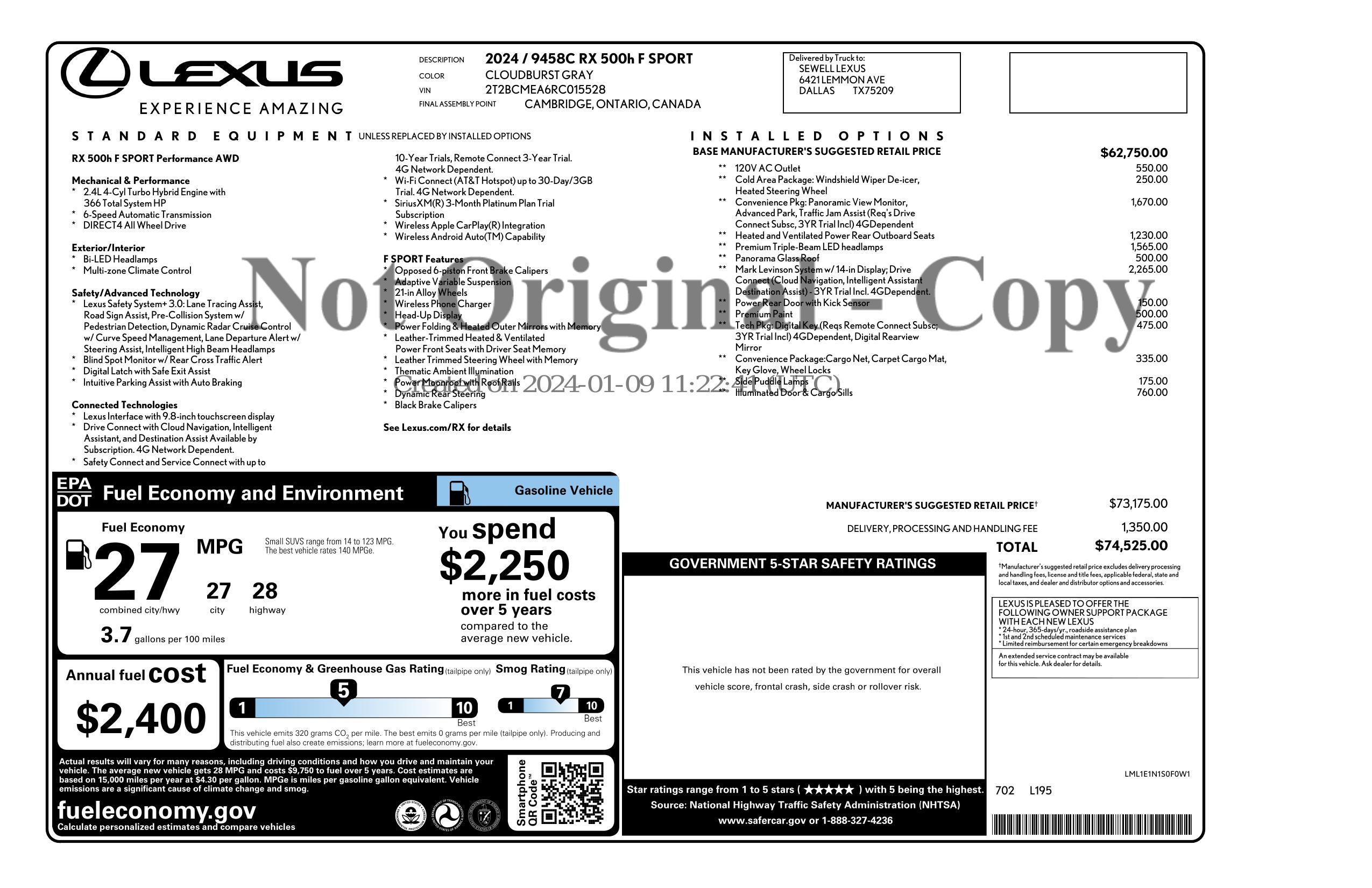 2024 Lexus Rx Rx 500h F Sport Performance Awd