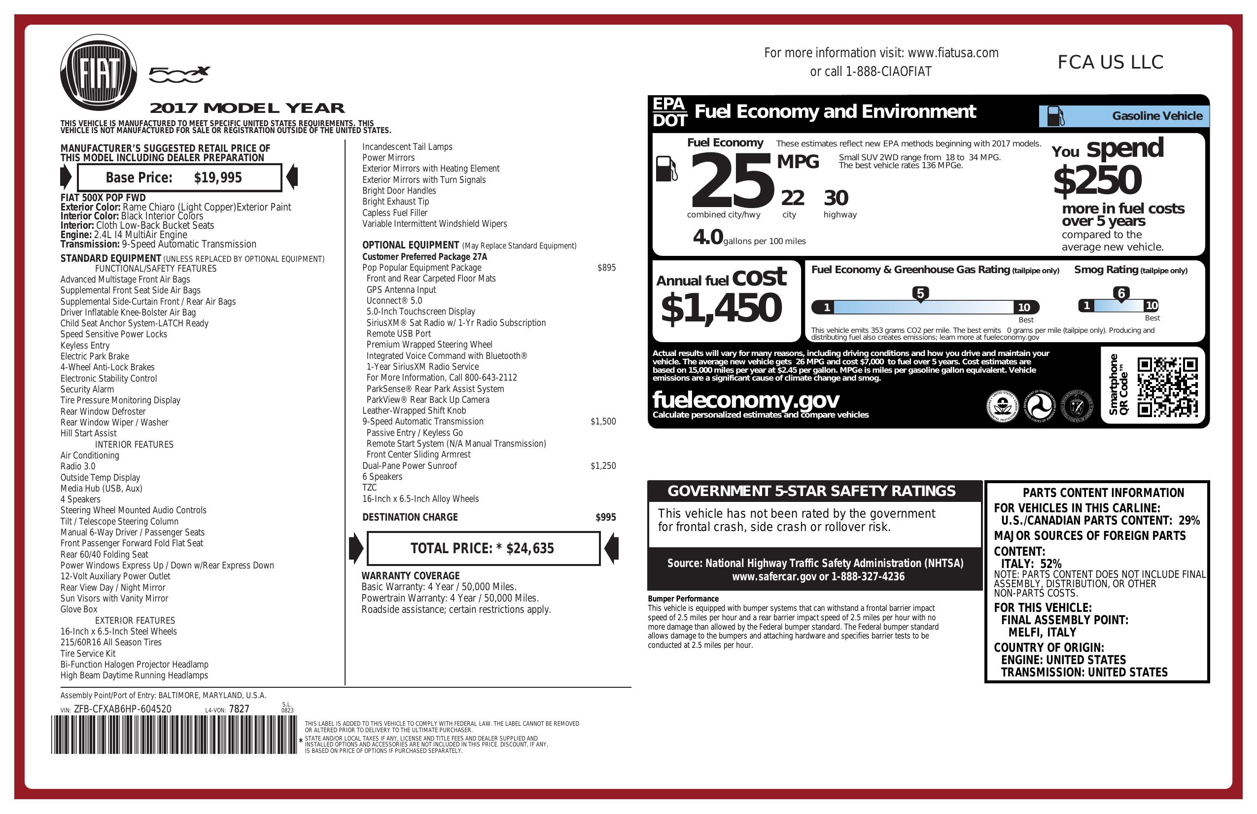2017 Fiat 500 X Pop Fwd