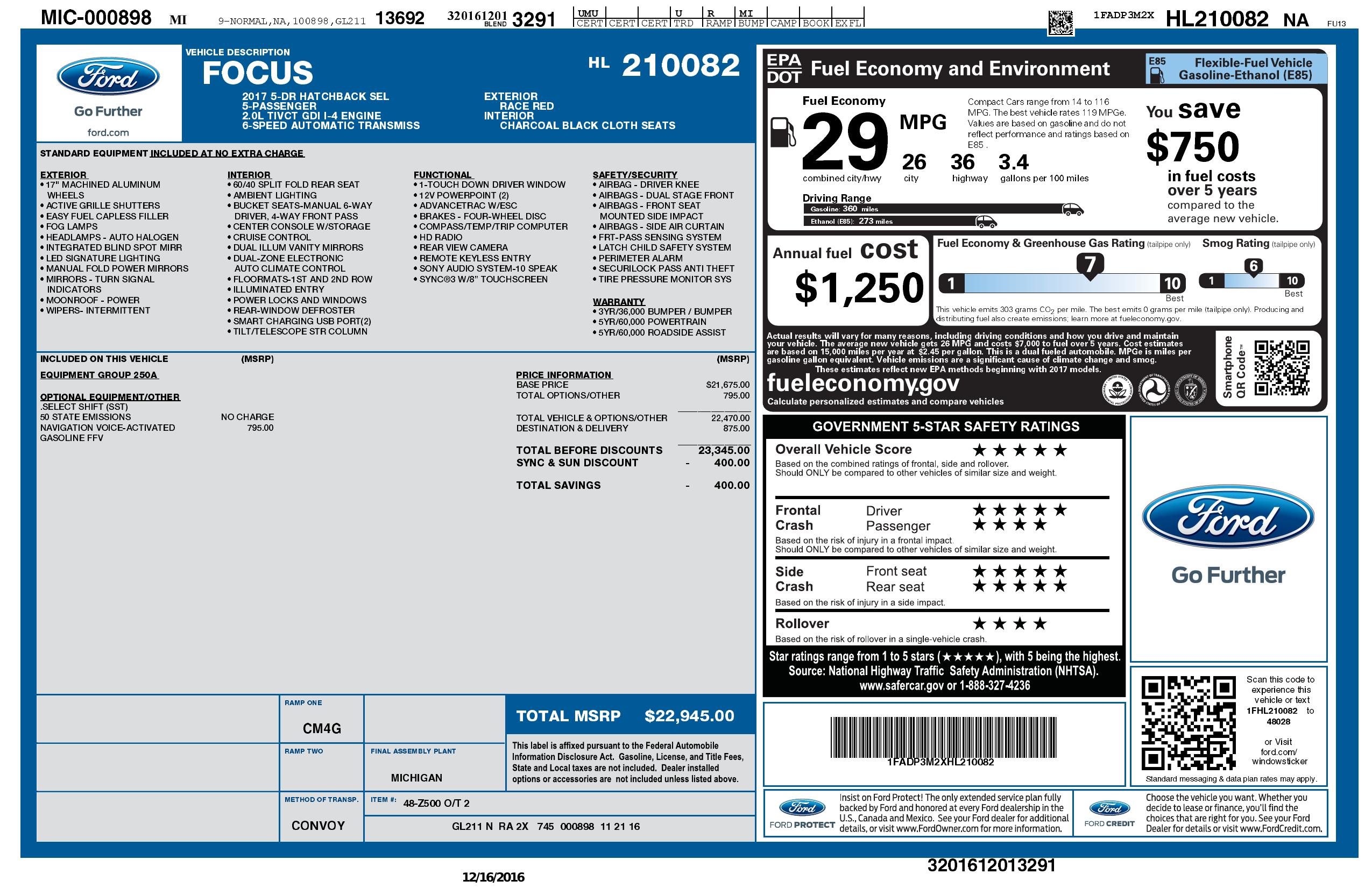 2017 Ford Focus Sel Hatch