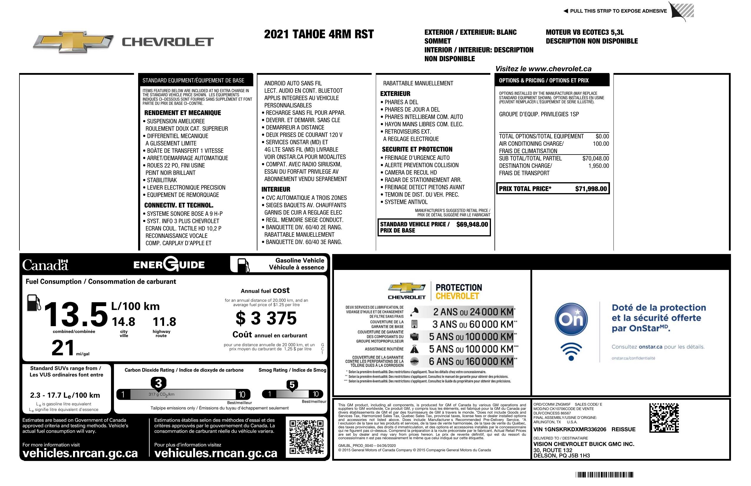 2021 Chevrolet Tahoe 4 Wd 4dr Rst