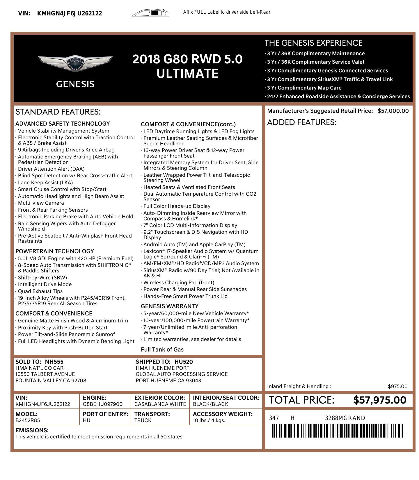 2018 Genesis G80 5.0 L Ultimate Rwd