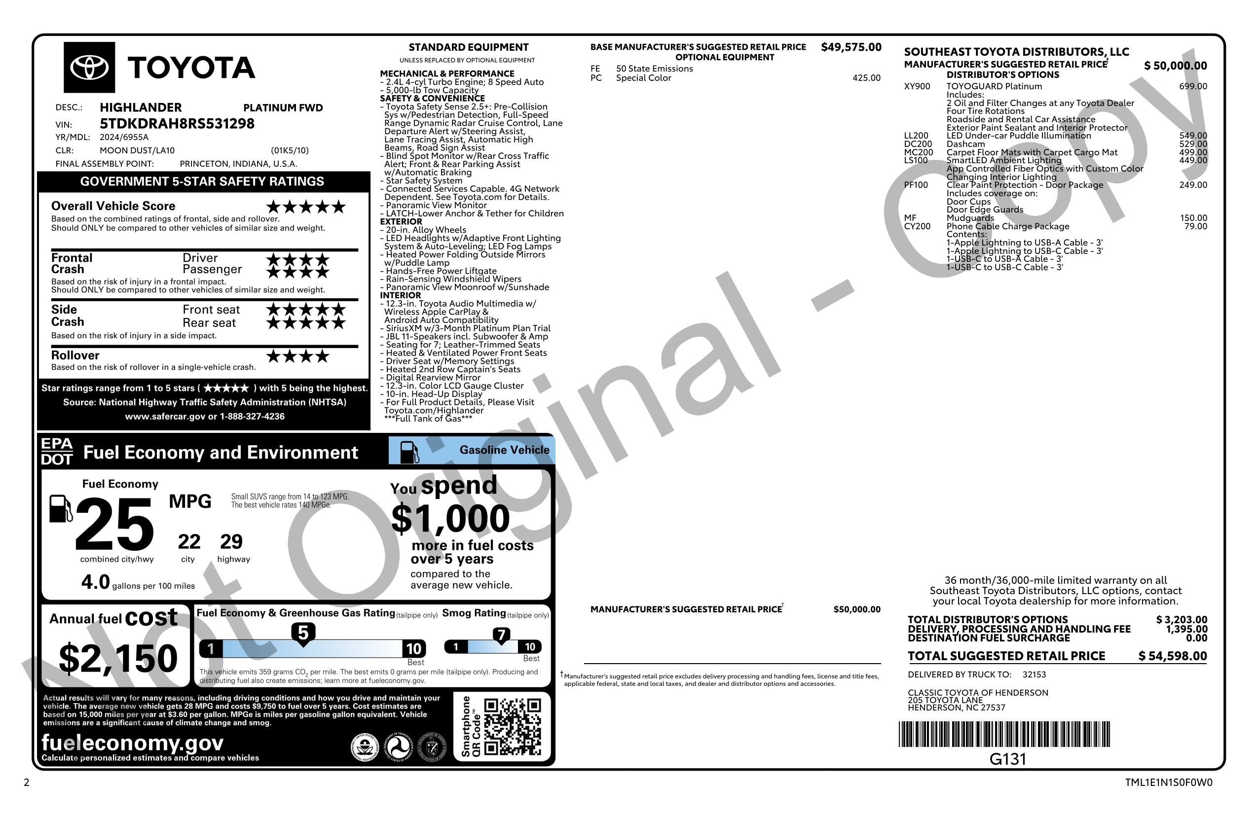 2024 Toyota Highlander Fwd (Natl)