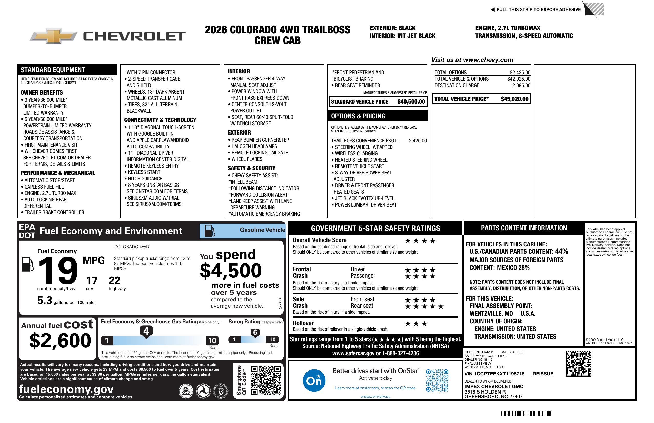 2026 Chevrolet Colorado 4 Wd Crew Cab Trail Boss