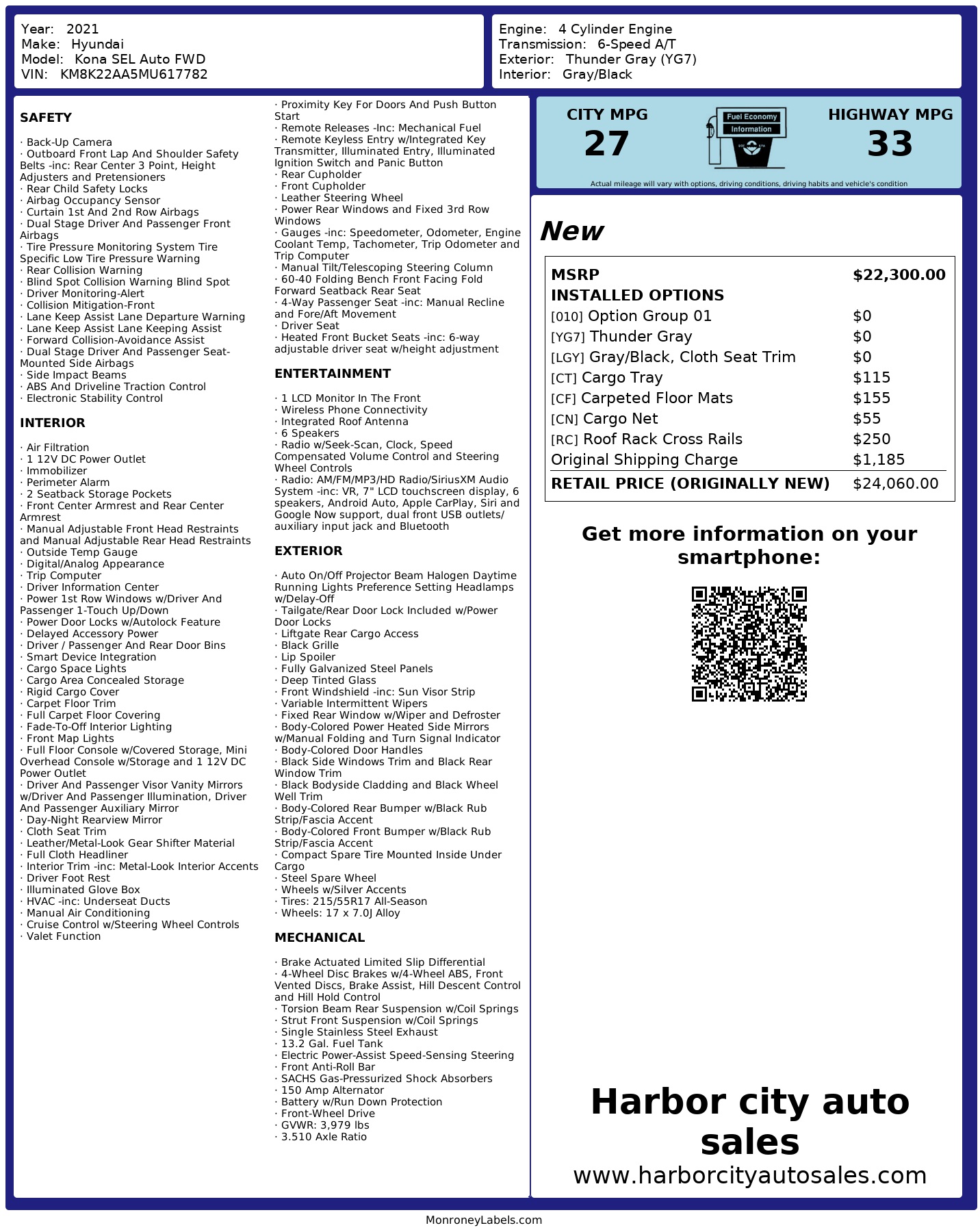 2021 Hyundai Kona Sel Auto Fwd