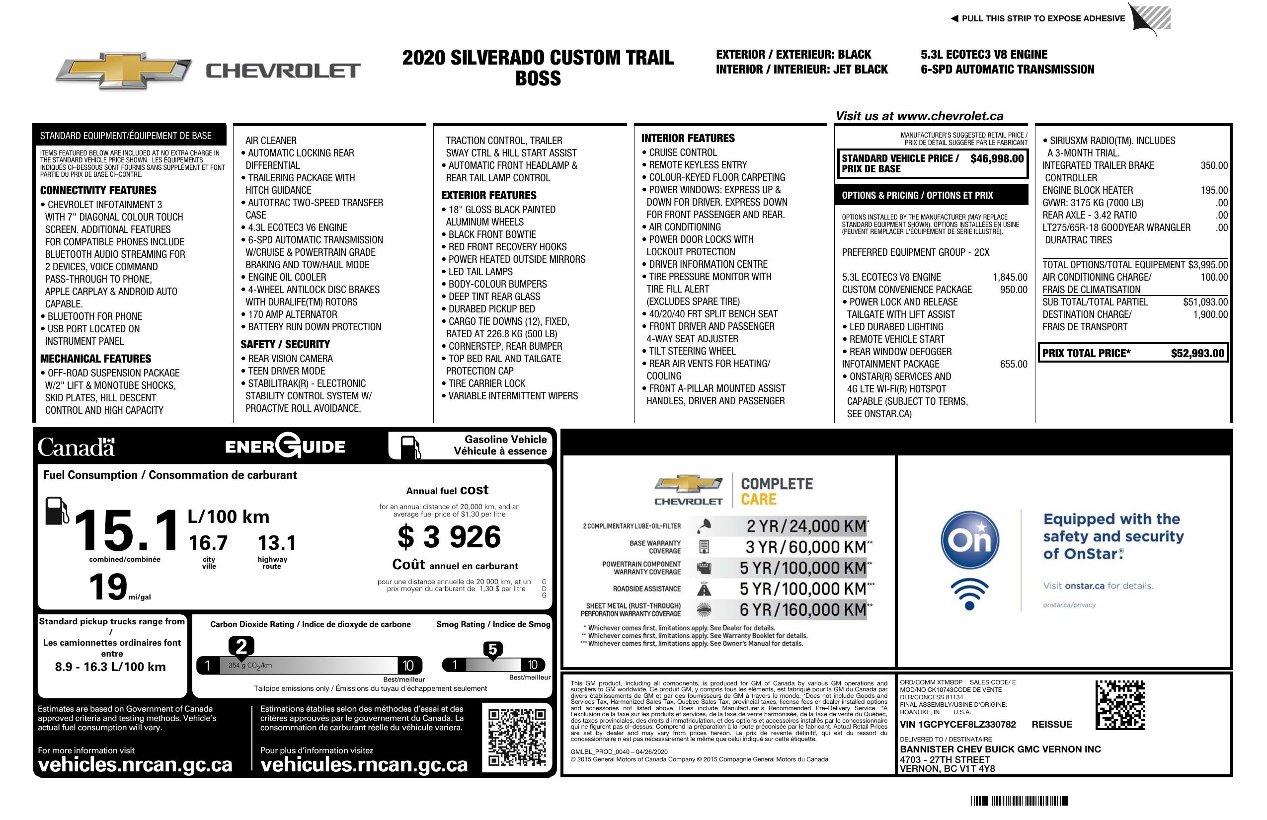 2020 Chevrolet Silverado 1500 4 Wd Crew Cab 157" Custom Trail Boss