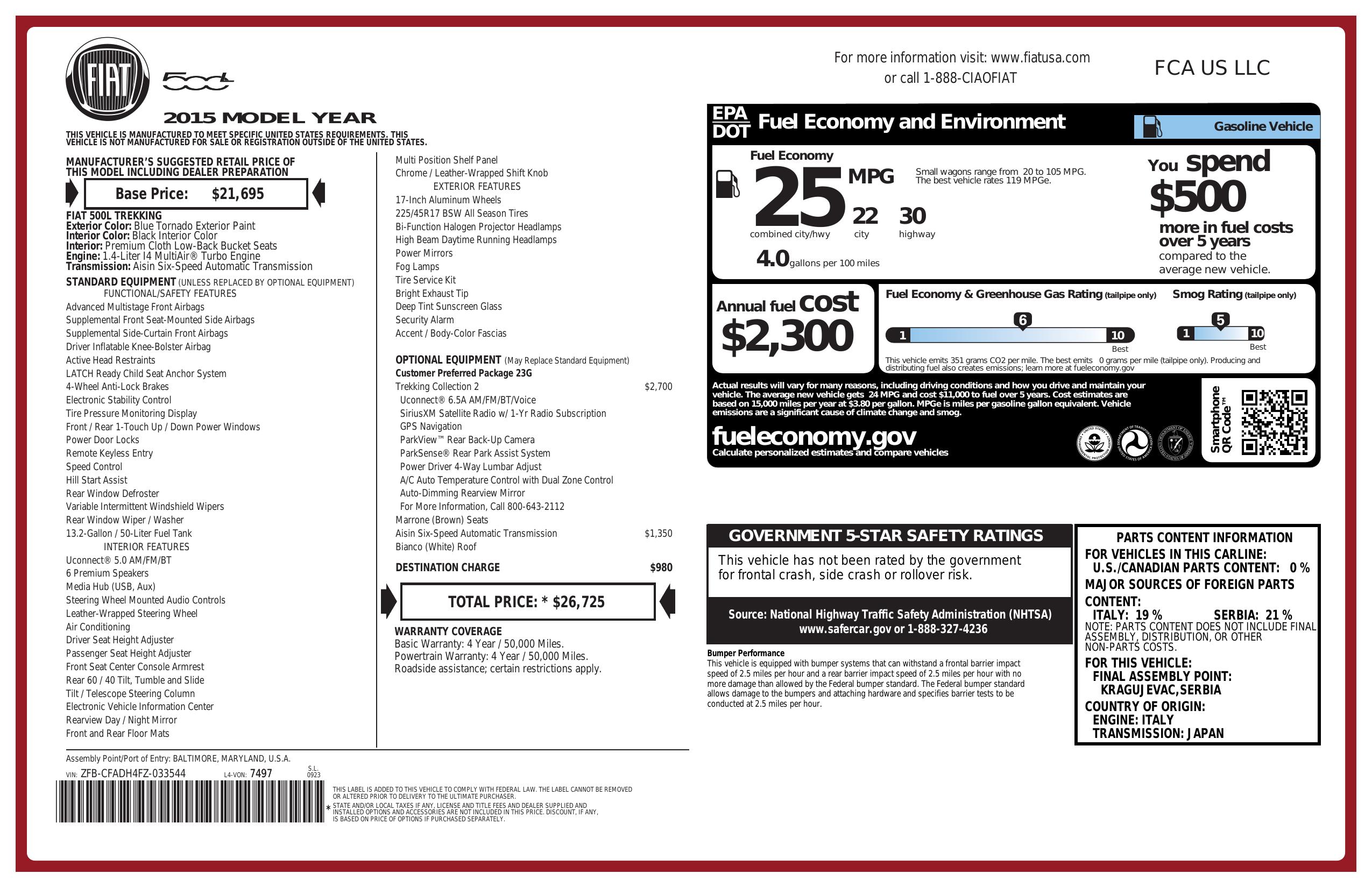 2015 Fiat 500 L 5dr Hb Trekking