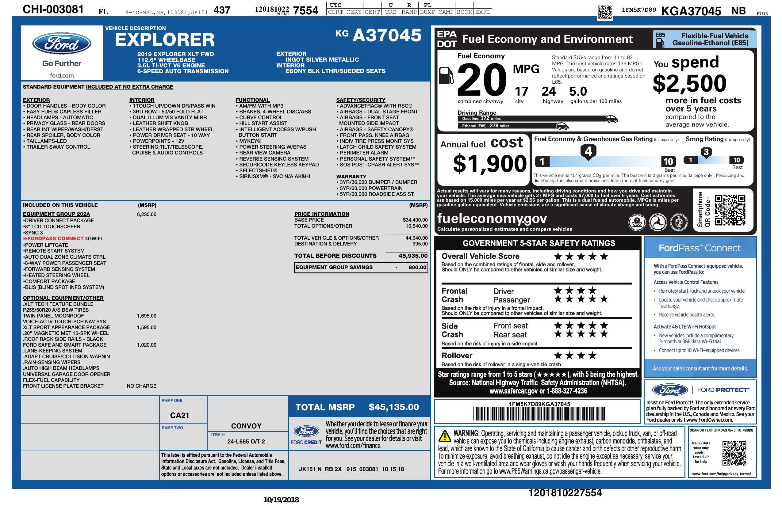 2019 Ford Explorer Xlt Fwd