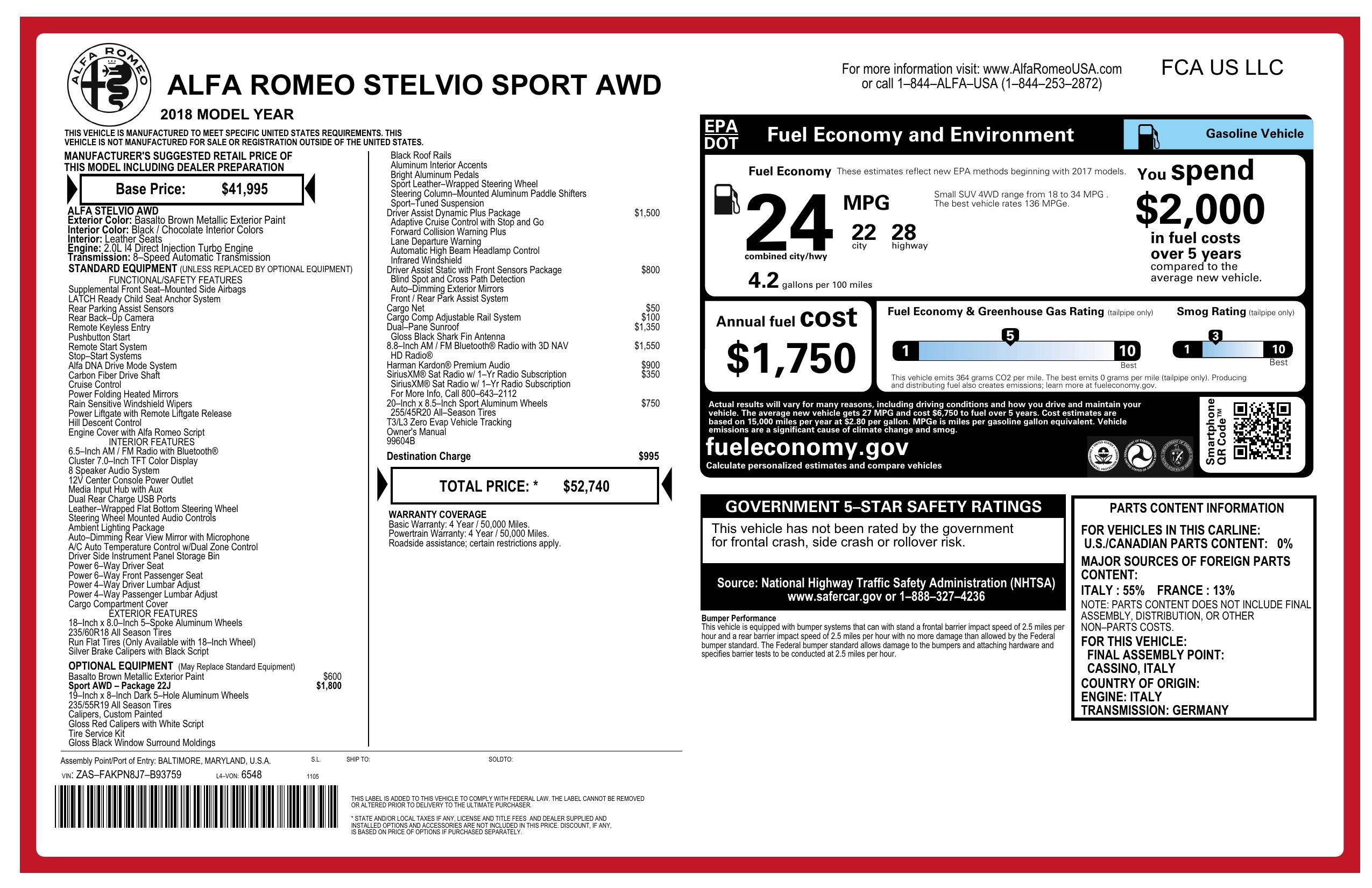 2018 Alfa Romeo Stelvio Sport Awd