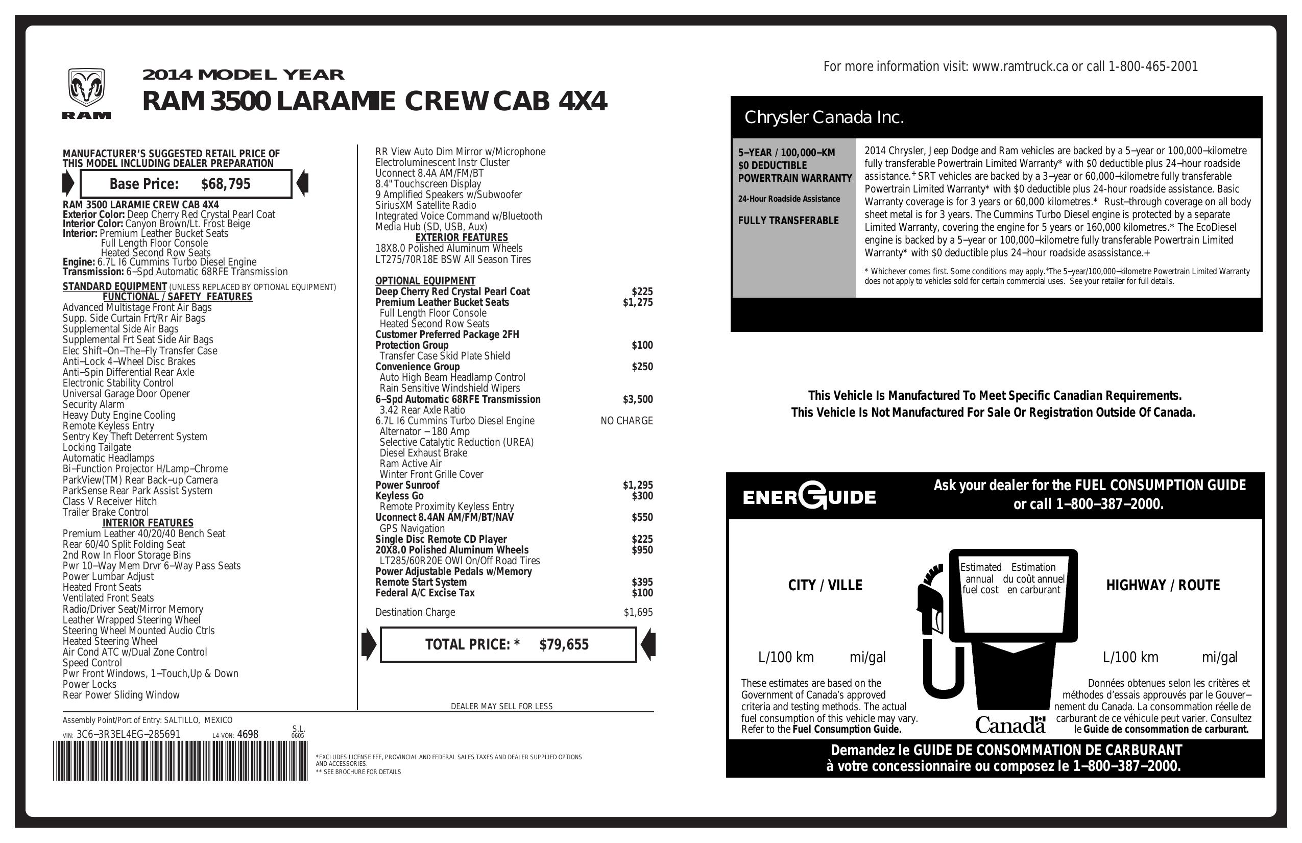 2014 Ram 3500 4 Wd Crew Cab 149" Laramie