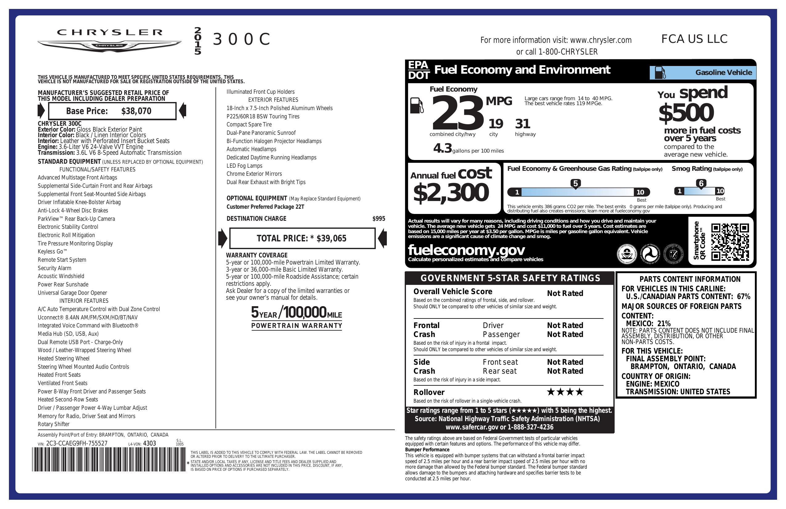 2015 Chrysler 300 4dr Sdn 300 C Rwd
