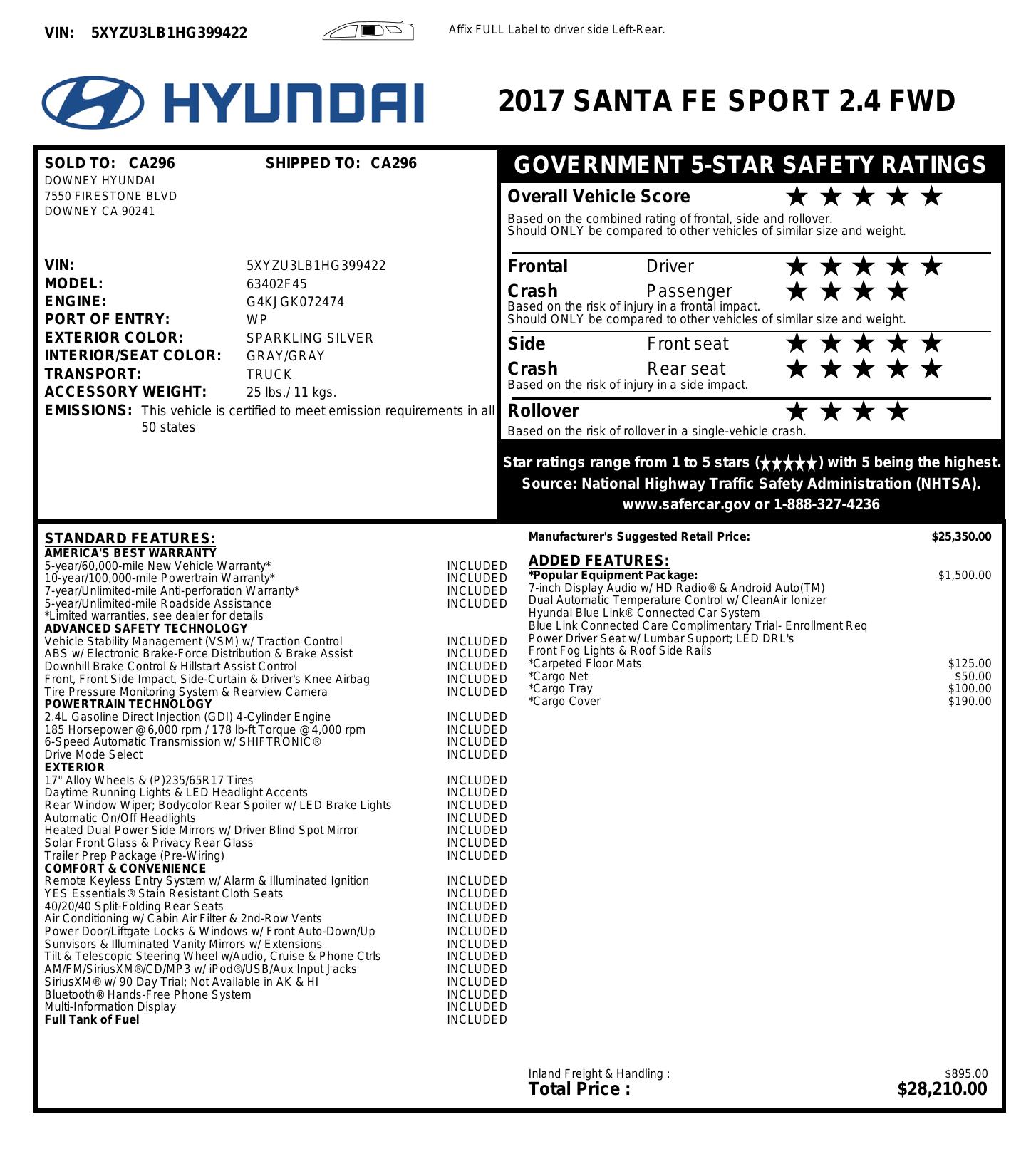 2017 Hyundai Santa Fe Sport 2.4 L Auto