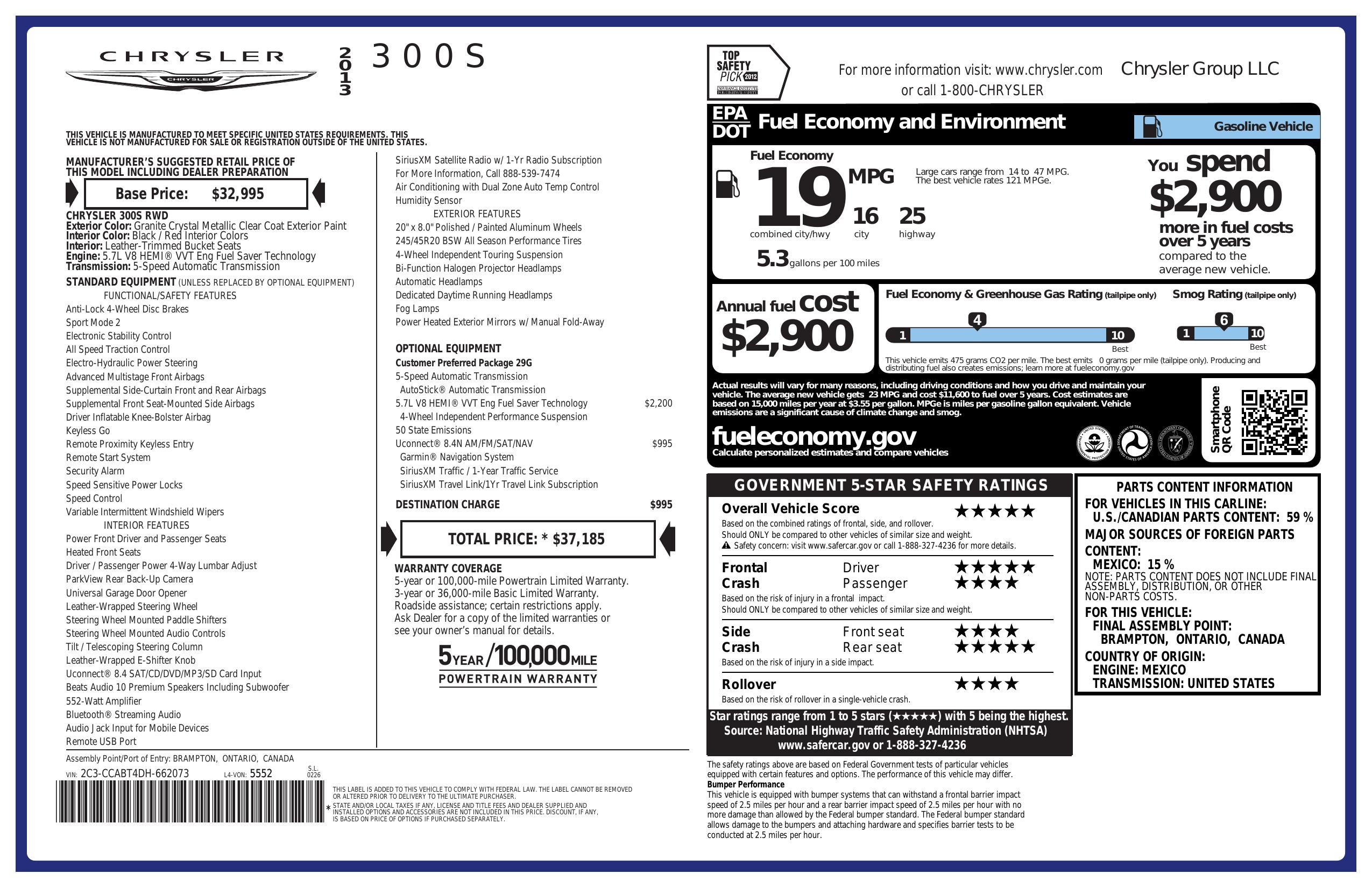 2013 Chrysler 300 4dr Sdn 300 S Rwd