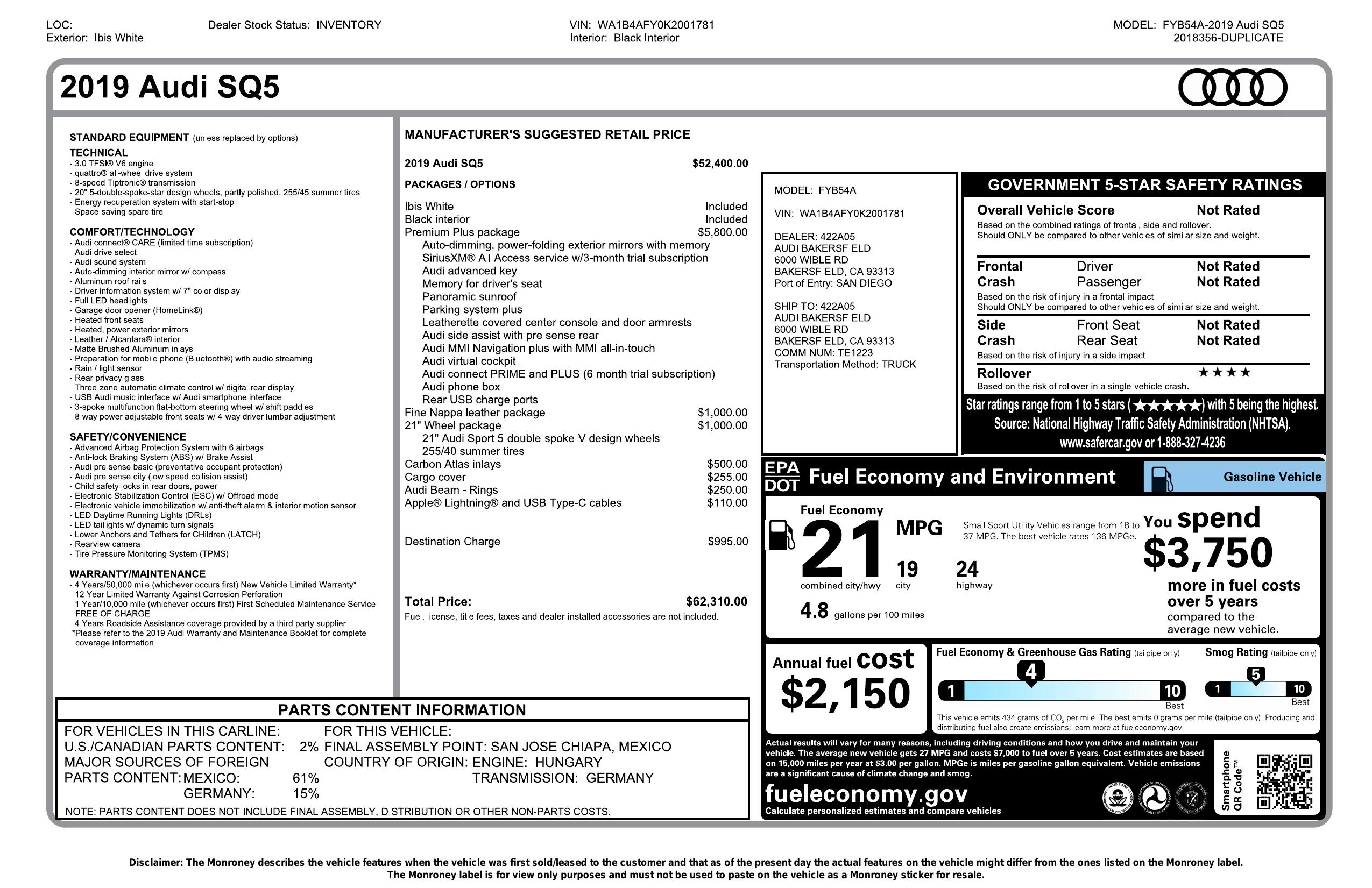 2019 Audi Sq5 Premium Plus 3.0 Tfsi Quattro