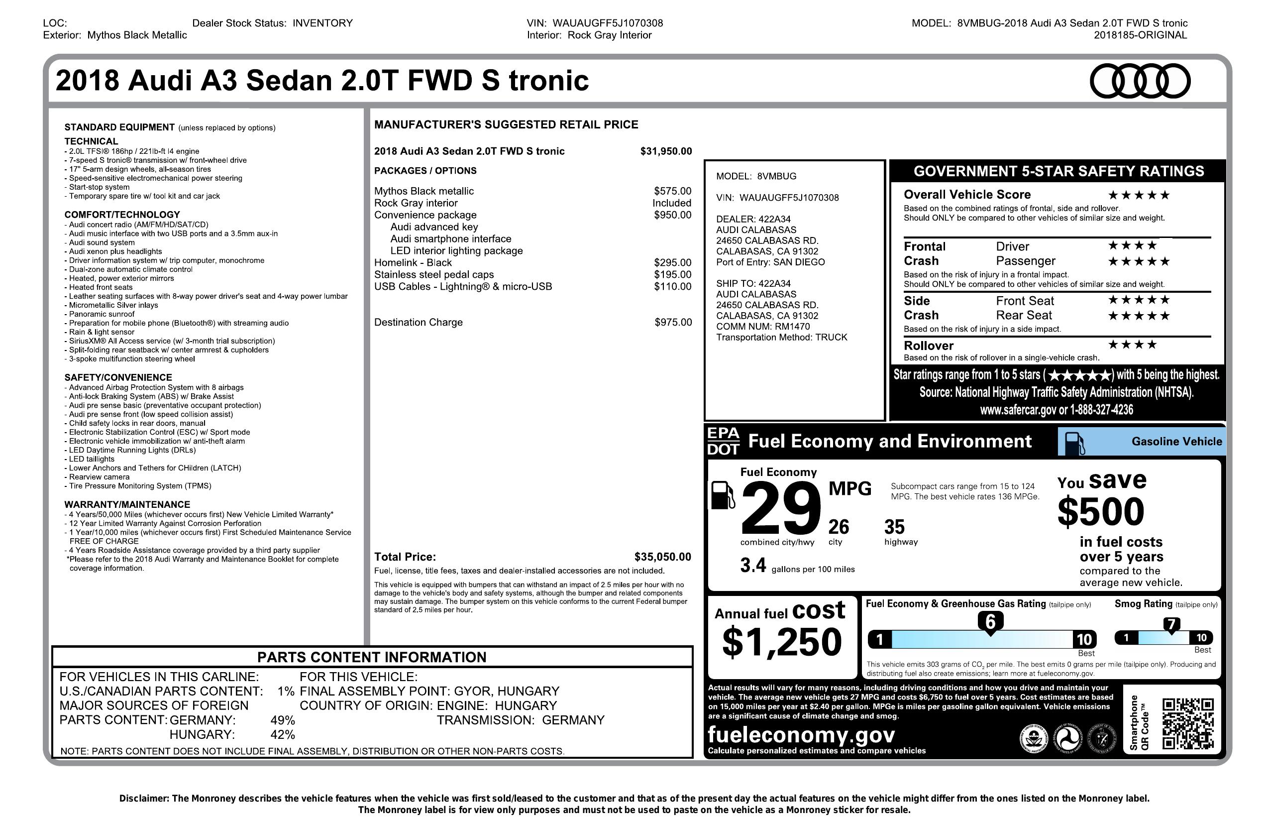 2018 Audi A3 Sedan 2.0 Tfsi Premium Fwd