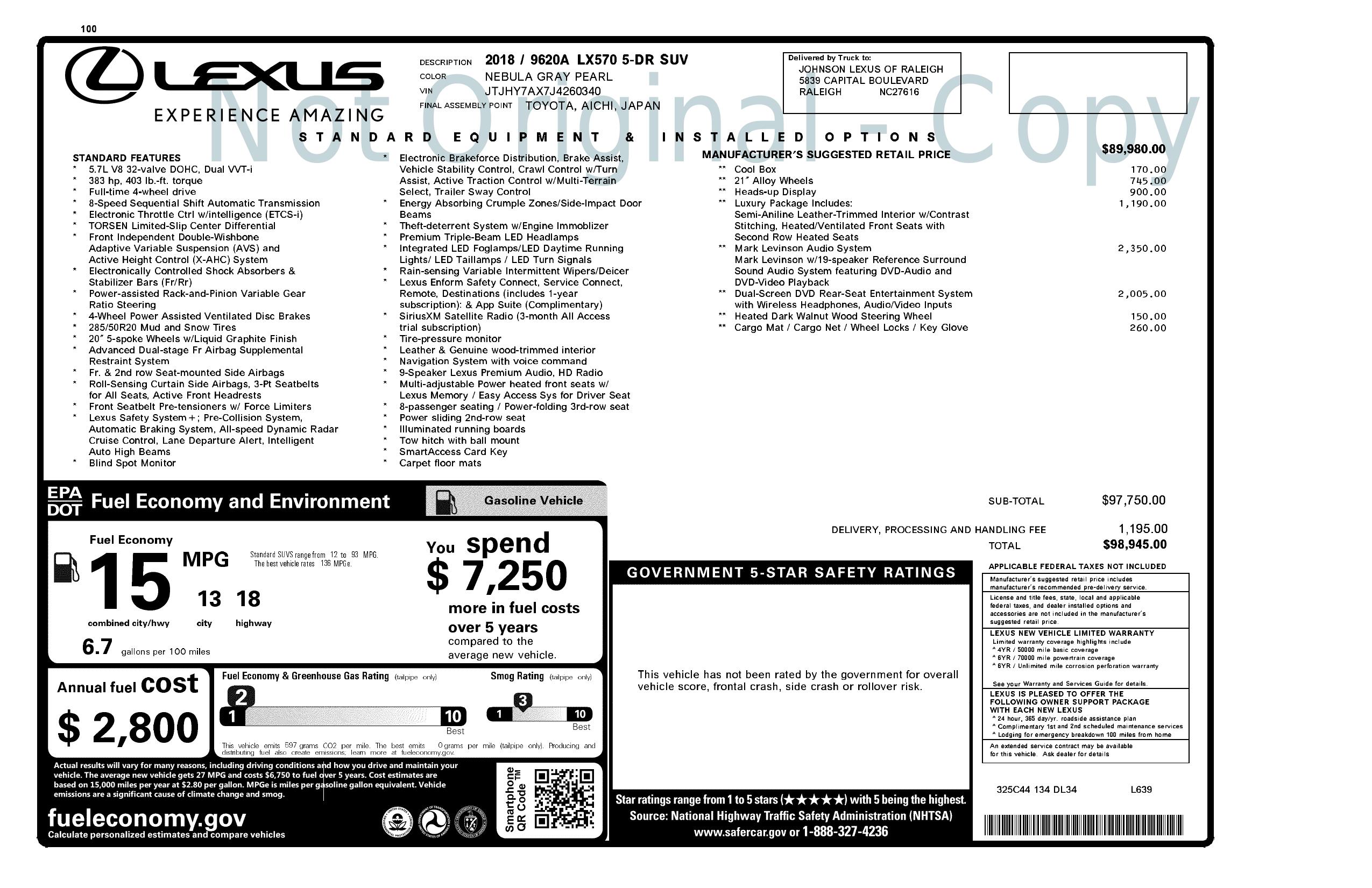 2018 Lexus Lx Lx 570 Row 4 Wd