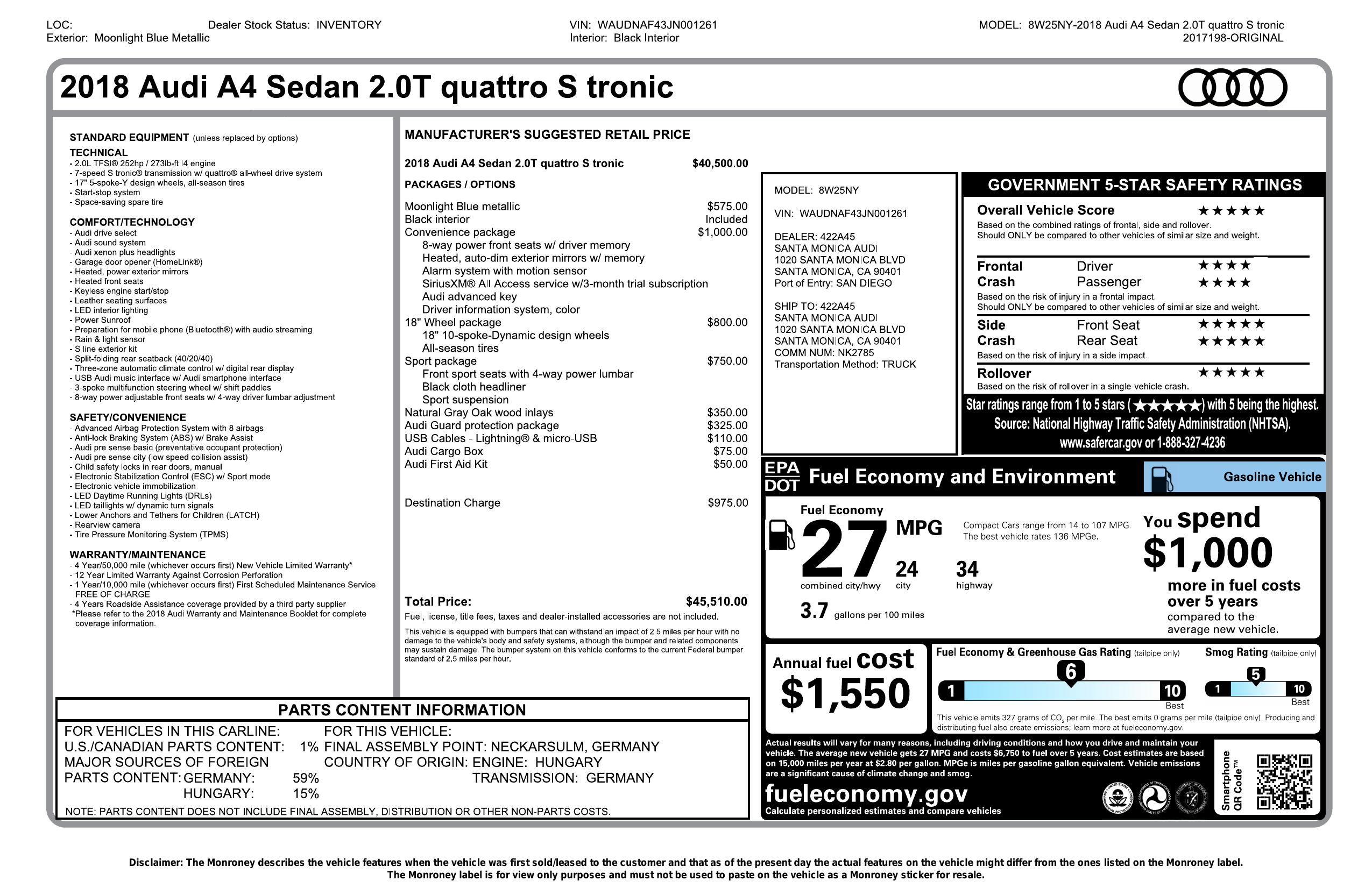 2018 Audi A4 2.0 Tfsi Premium S Tronic Quattro Awd