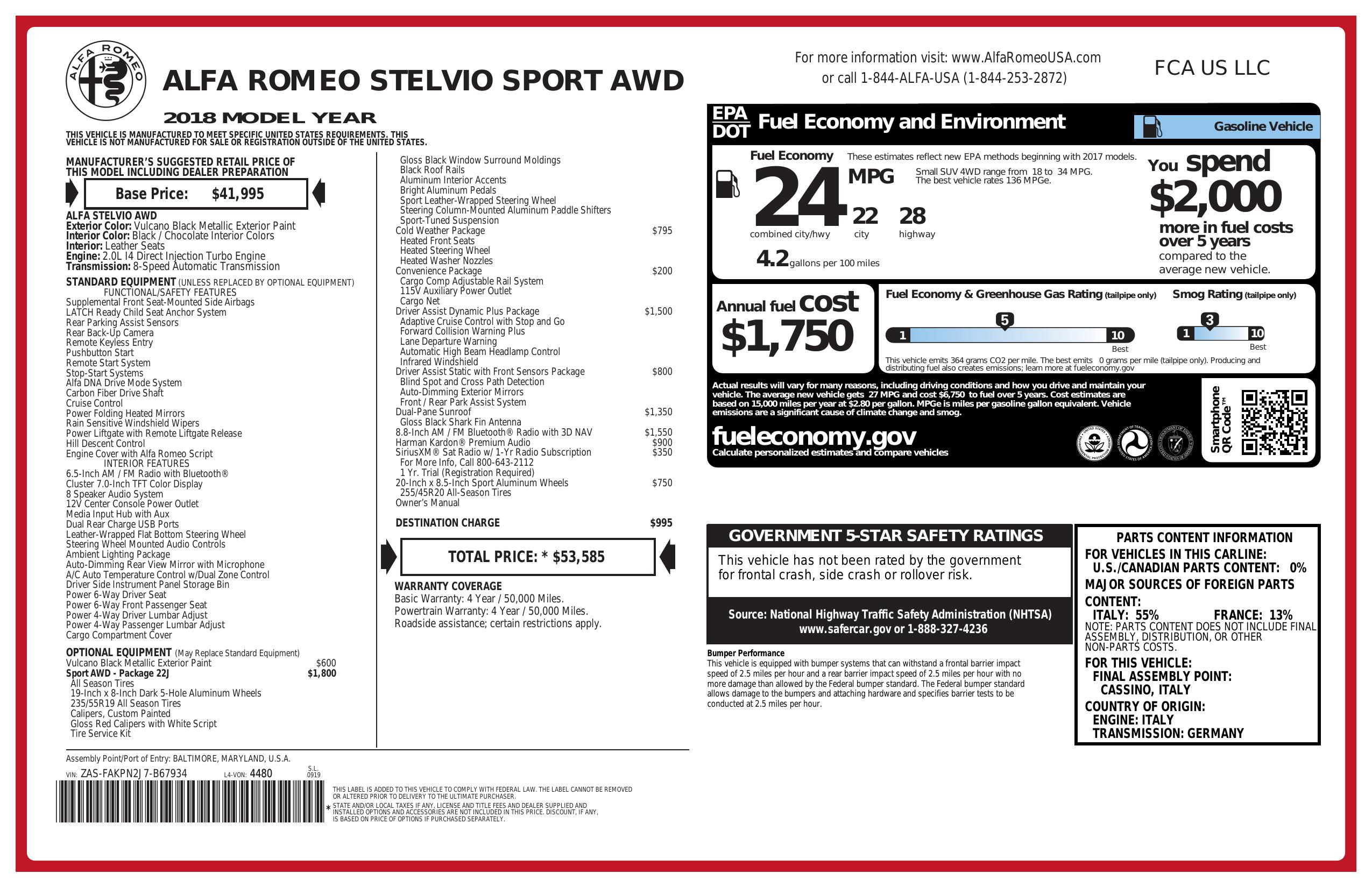 2018 Alfa Romeo Stelvio Sport Awd