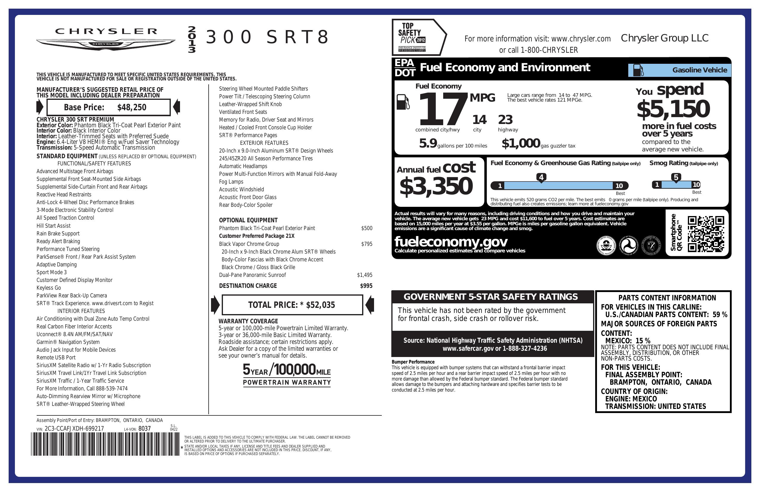 2013 Chrysler 300 4dr Sdn Srt8 Rwd