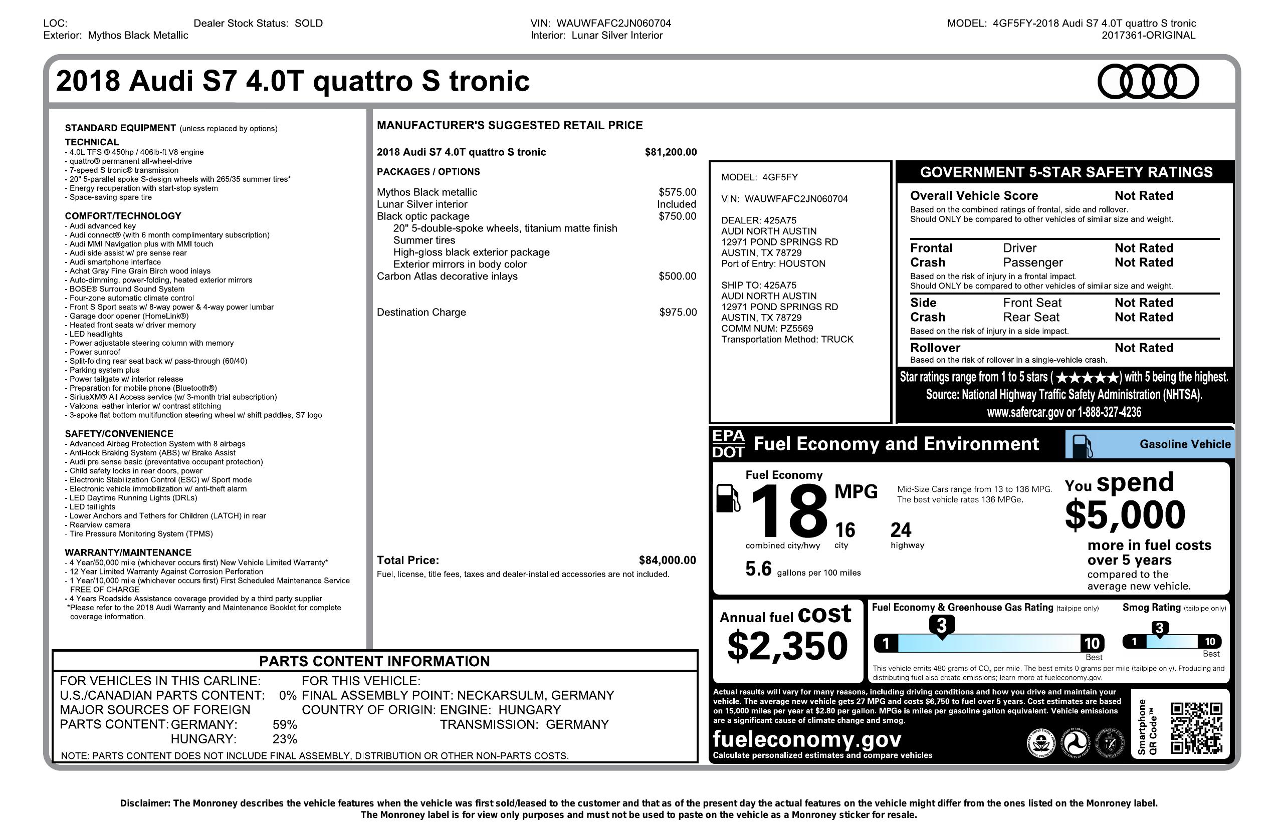 2018 Audi S7 4.0 Tfsi Premium Plus