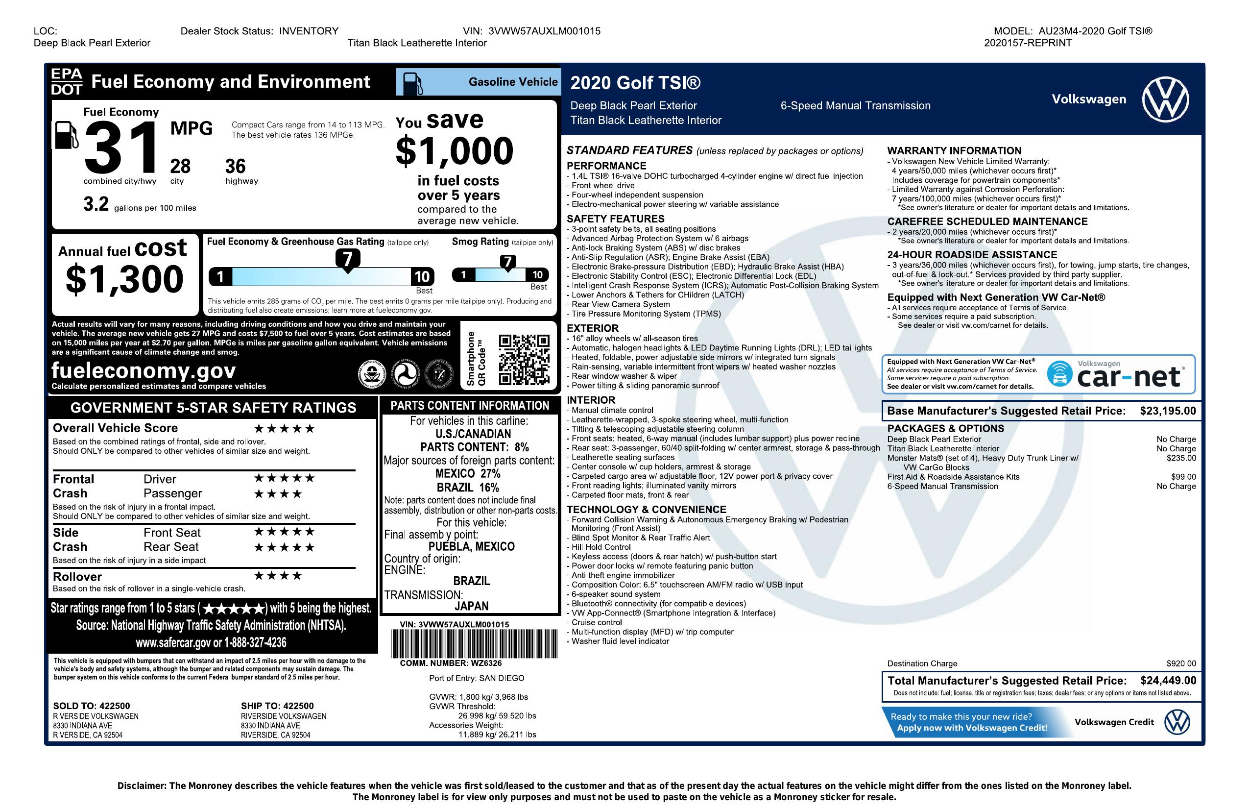 2020 Volkswagen Golf 1.4 T Tsi Manual