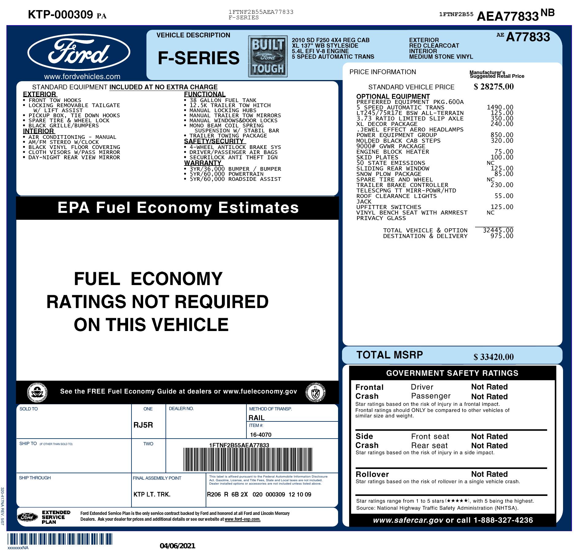 2010 Ford Super Duty F 250 Srw 4 Wd Reg Cab 137"