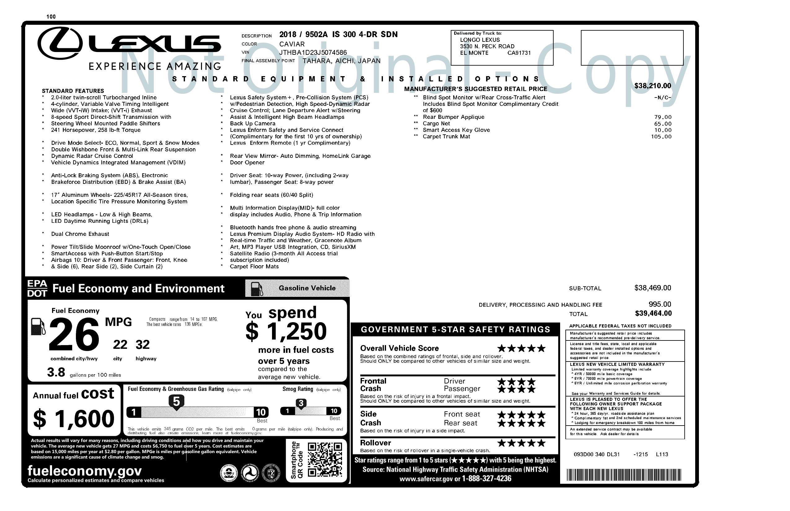 2018 Lexus Is Is 300 Rwd