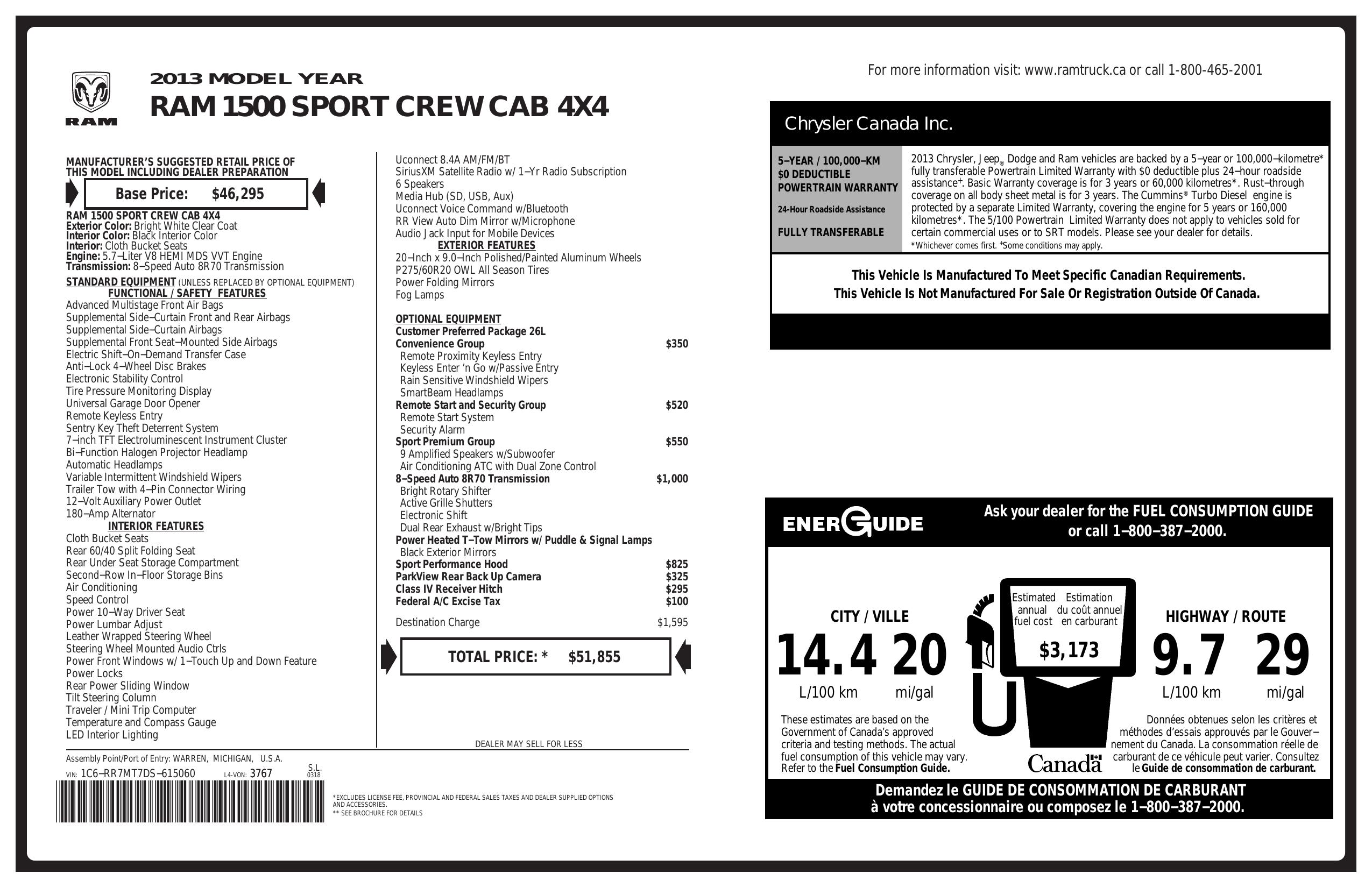 2013 Ram 1500 4 Wd Crew Cab 140.5" Sport