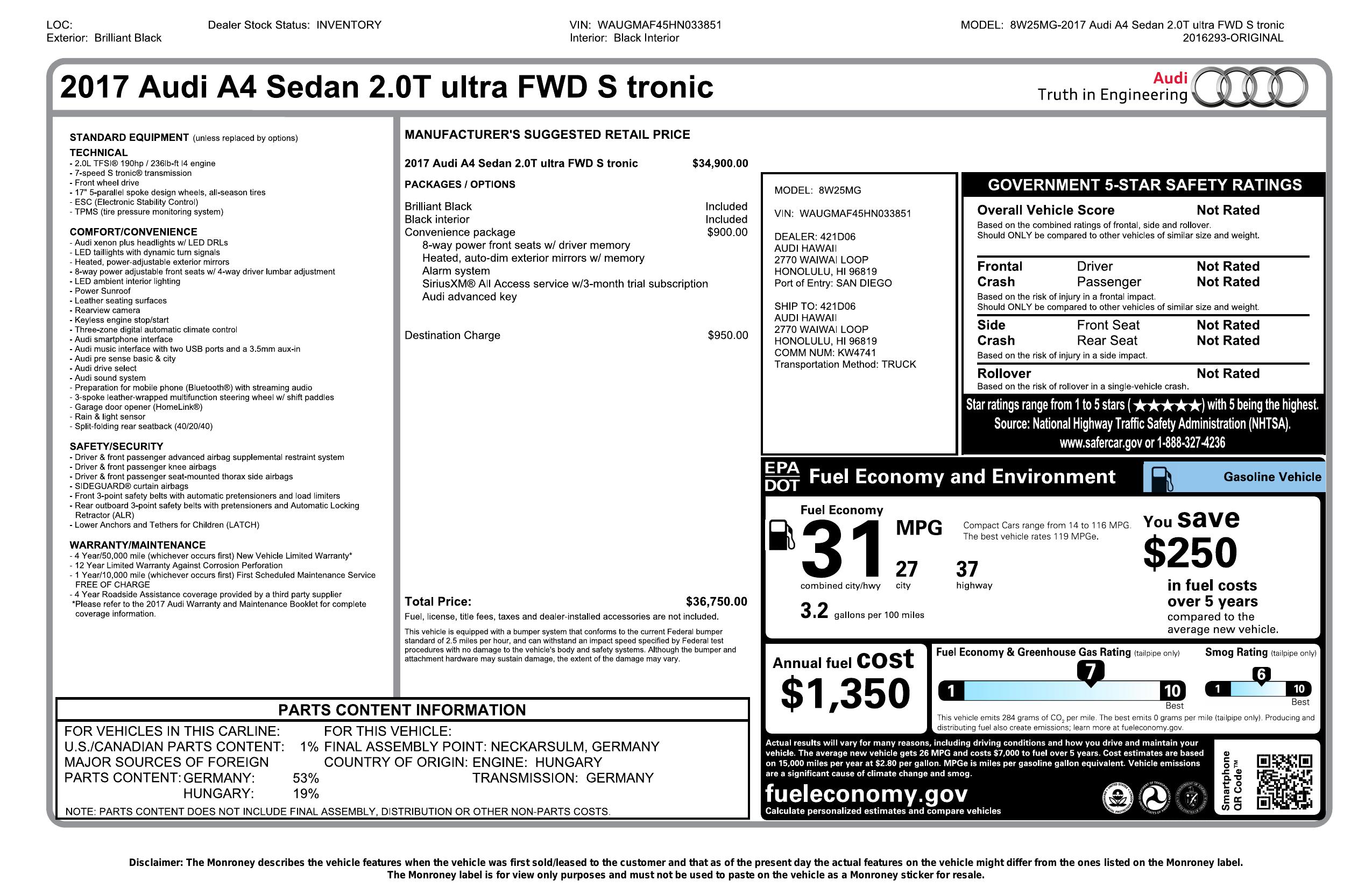 2017 Audi A4 2.0 Tfsi Auto Ultra Premium Fwd