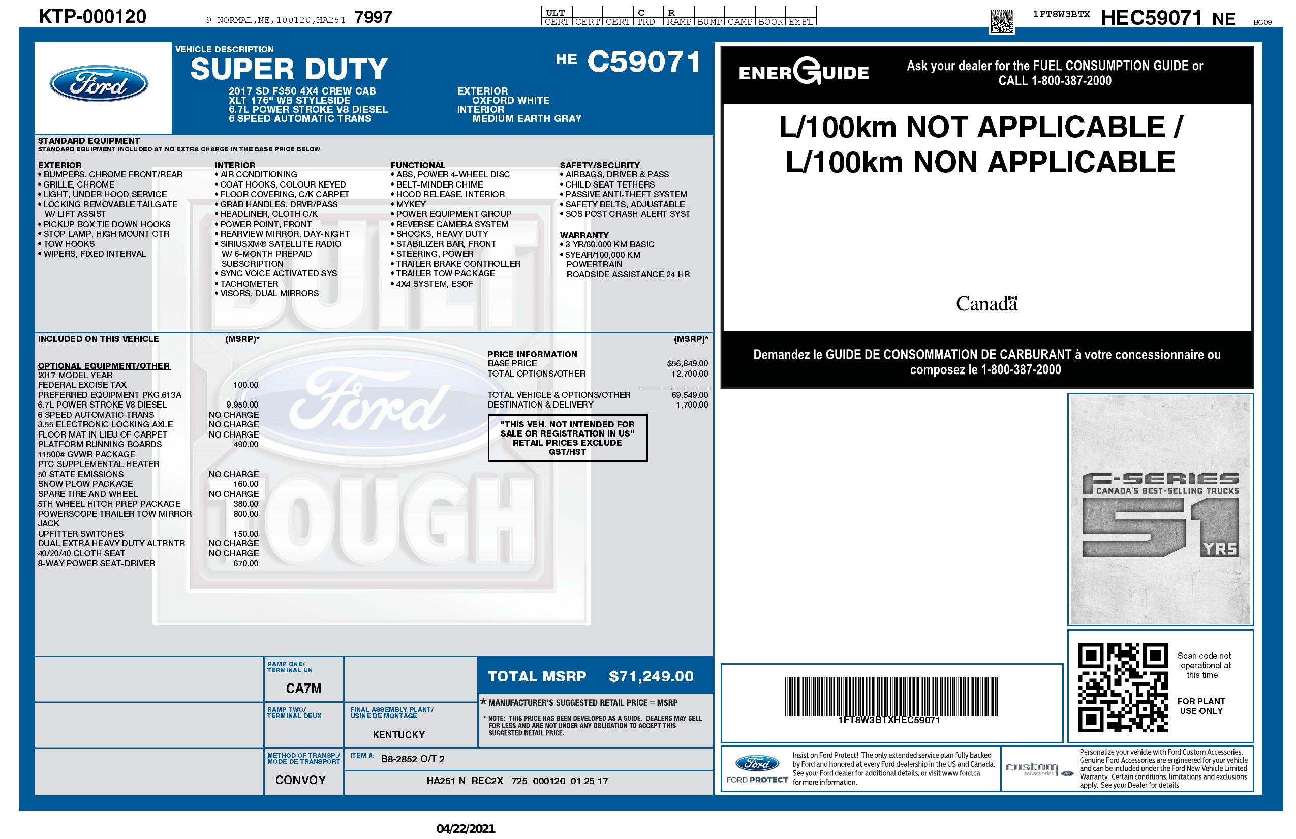 2017 Ford Super Duty F 350 Srw 4 Wd Crew Cab Box