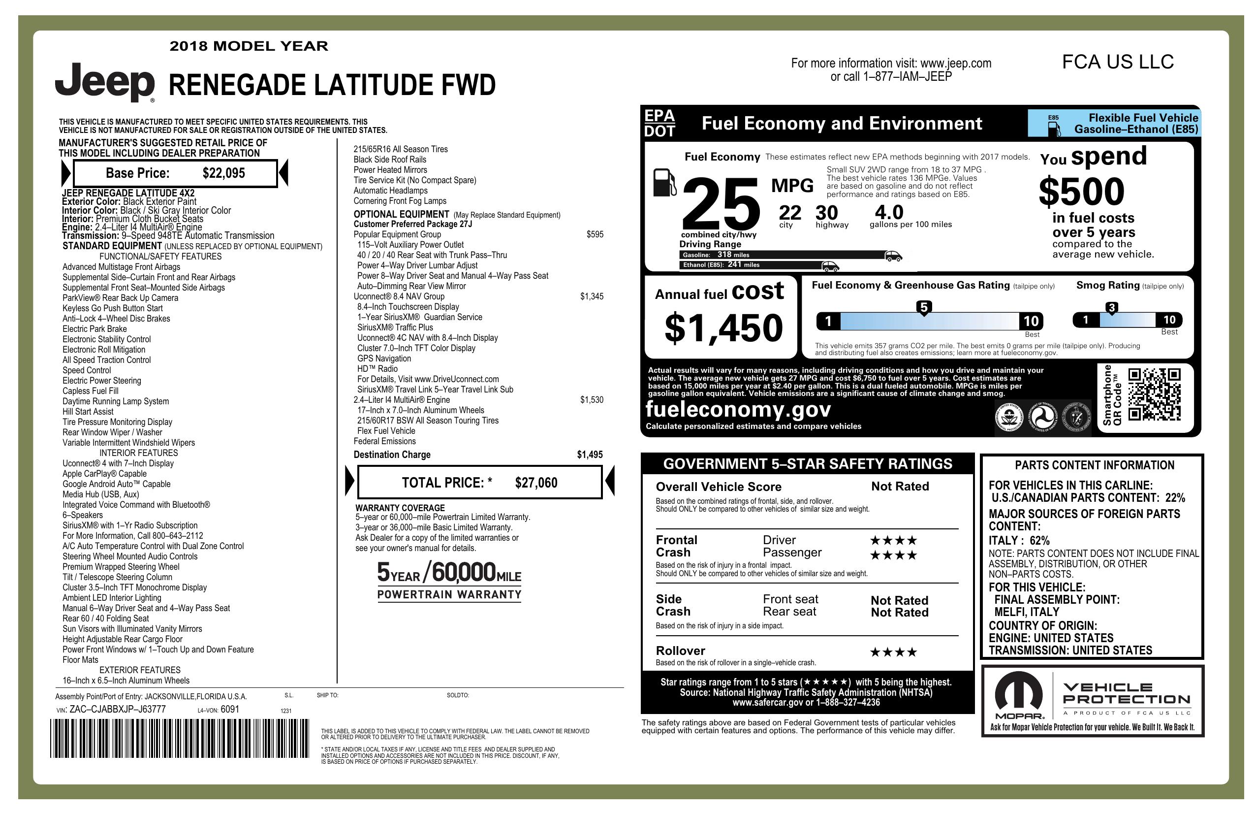 2018 Jeep Renegade Latitude Fwd