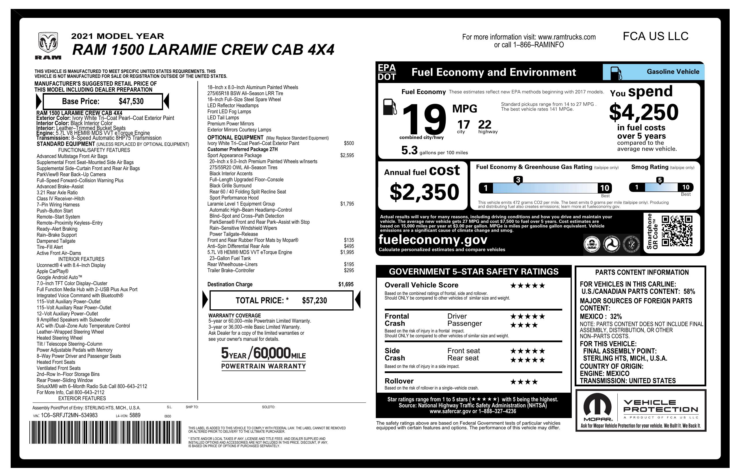 2021 Ram 1500 Laramie 4x4 Crew Cab 5'7" Box
