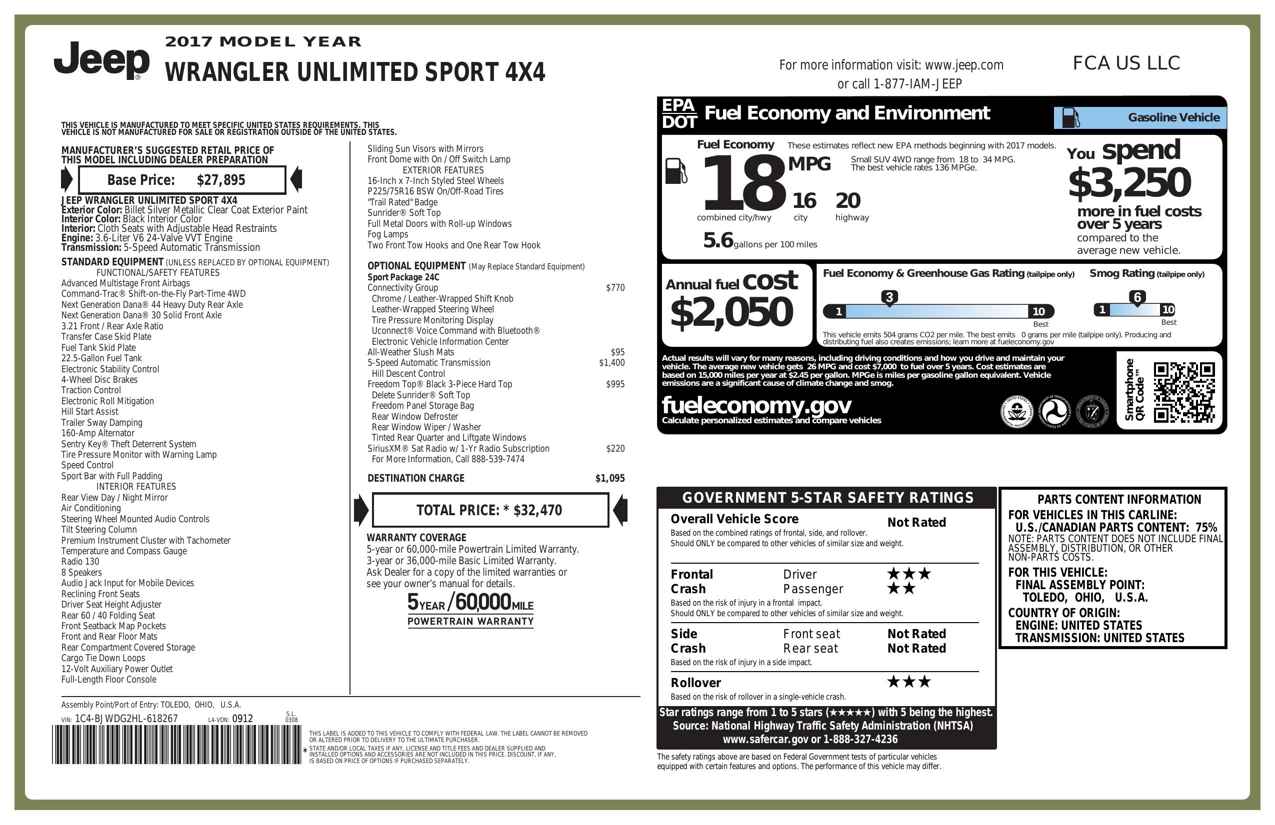 2017 Jeep Wrangler Unlimited Unlimited Sport