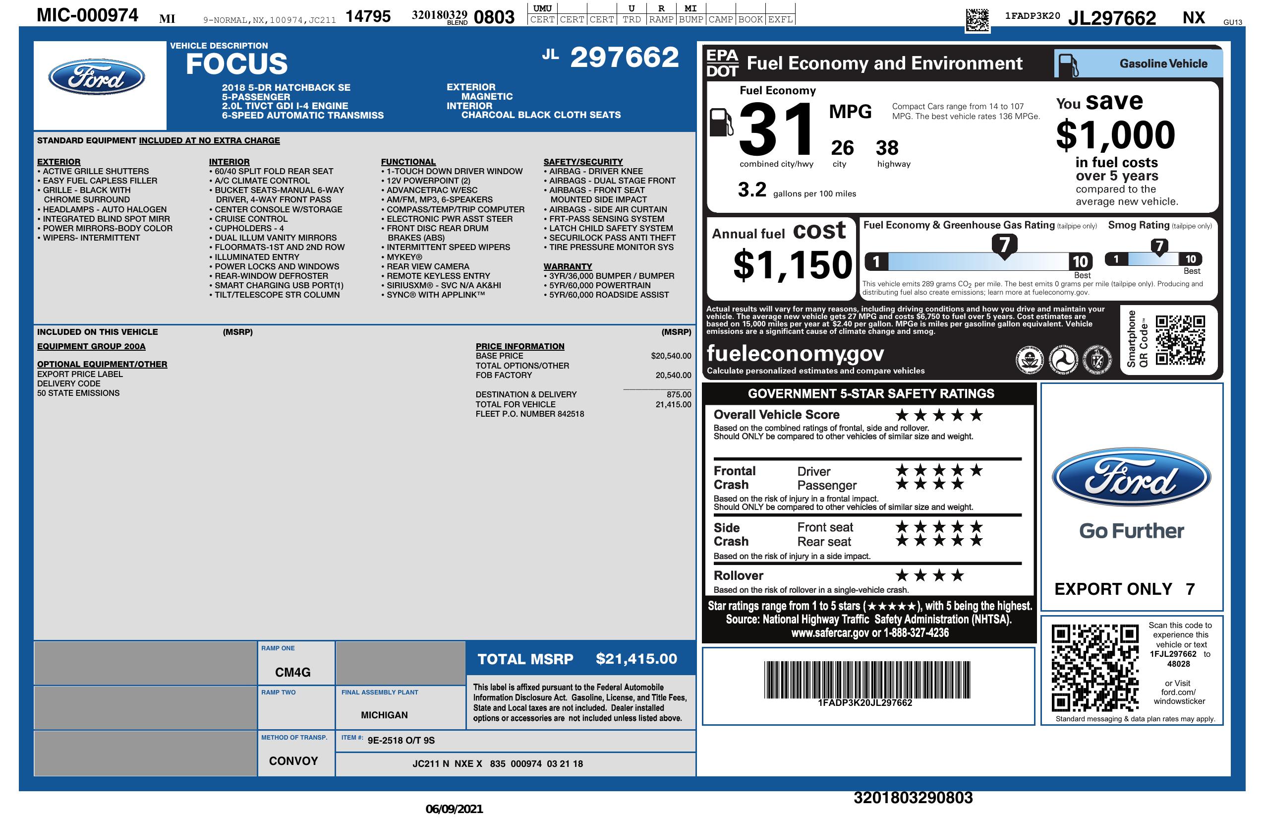 2018 Ford Focus Se Hatch