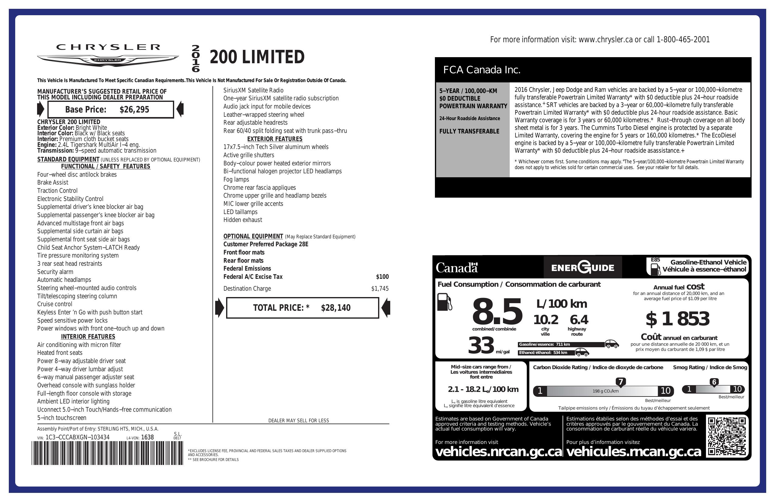 2016 Chrysler 200 4dr Sdn Limited Fwd