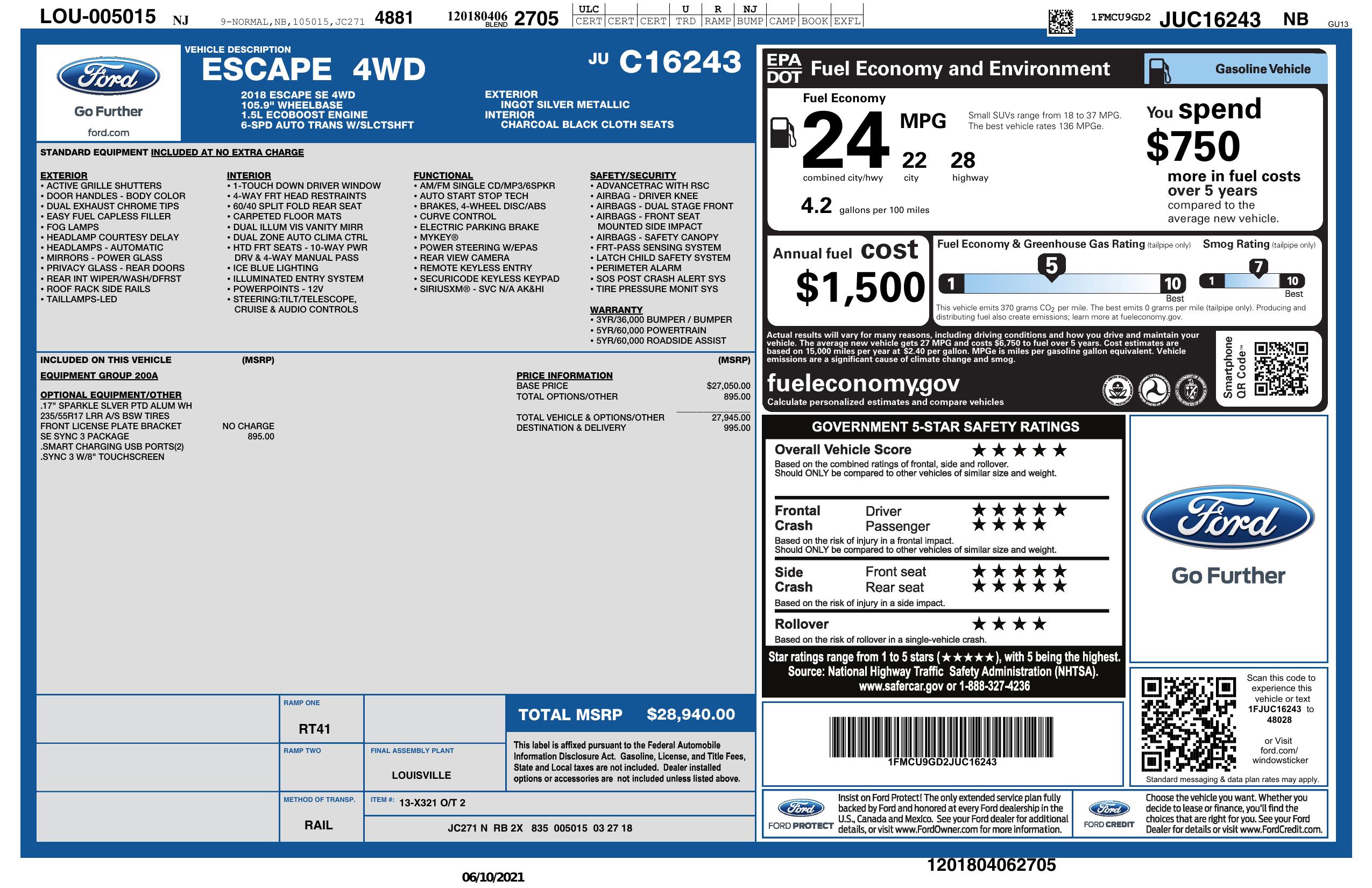 2018 Ford Escape Se 4 Wd